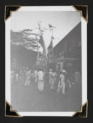 Hand written in white ink on album page; 'CHINESE FUNERAL'