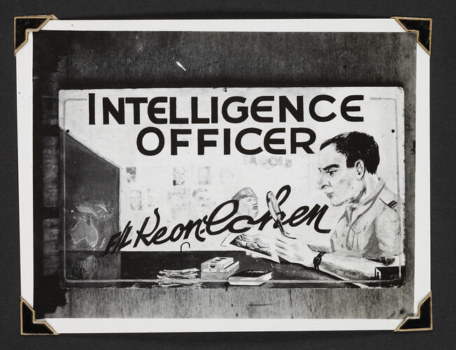 Black and white photograph of an office sign for F/L Keon-Cohen.