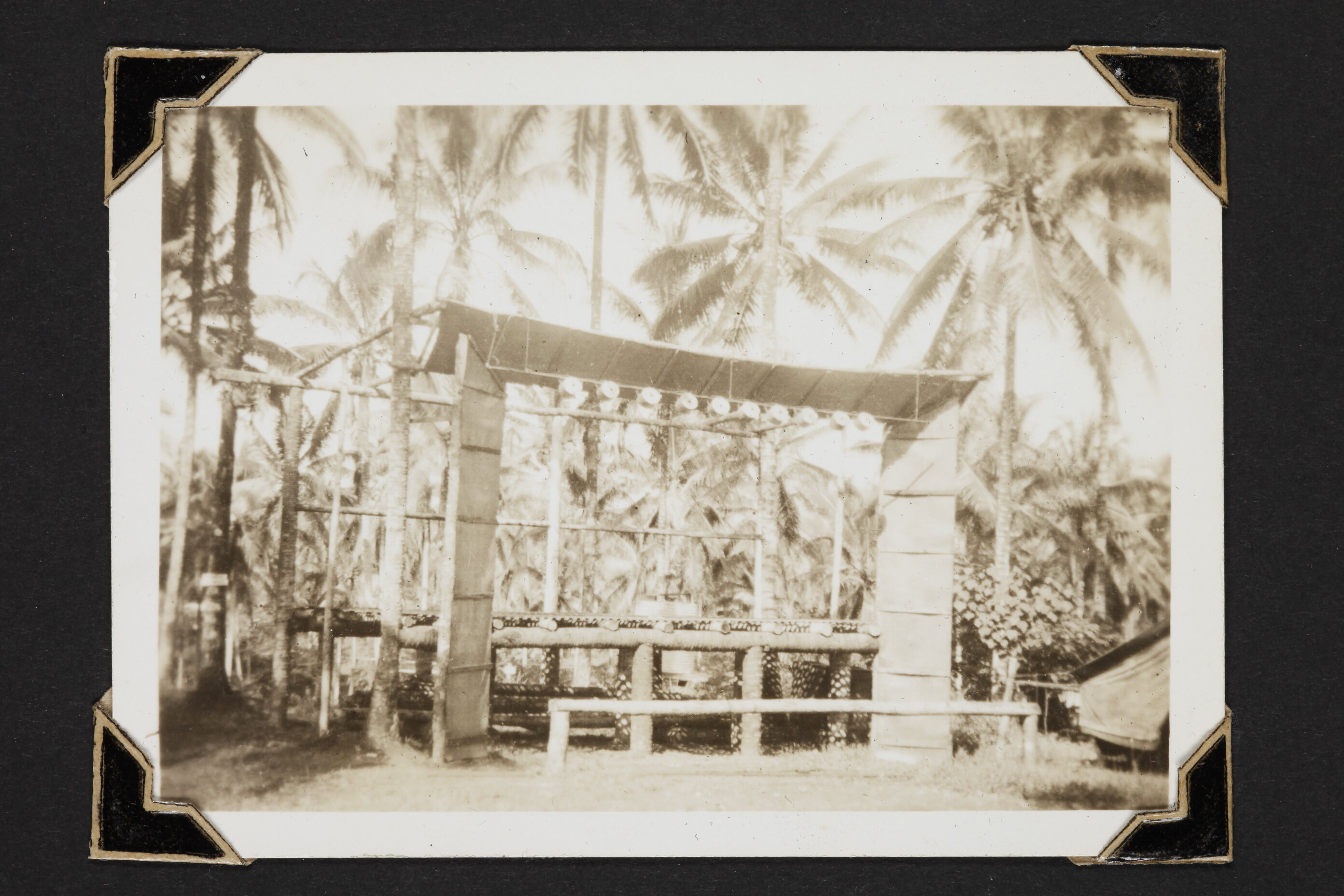 The concert stage at Milne Bay under contruction, New Guinea.
