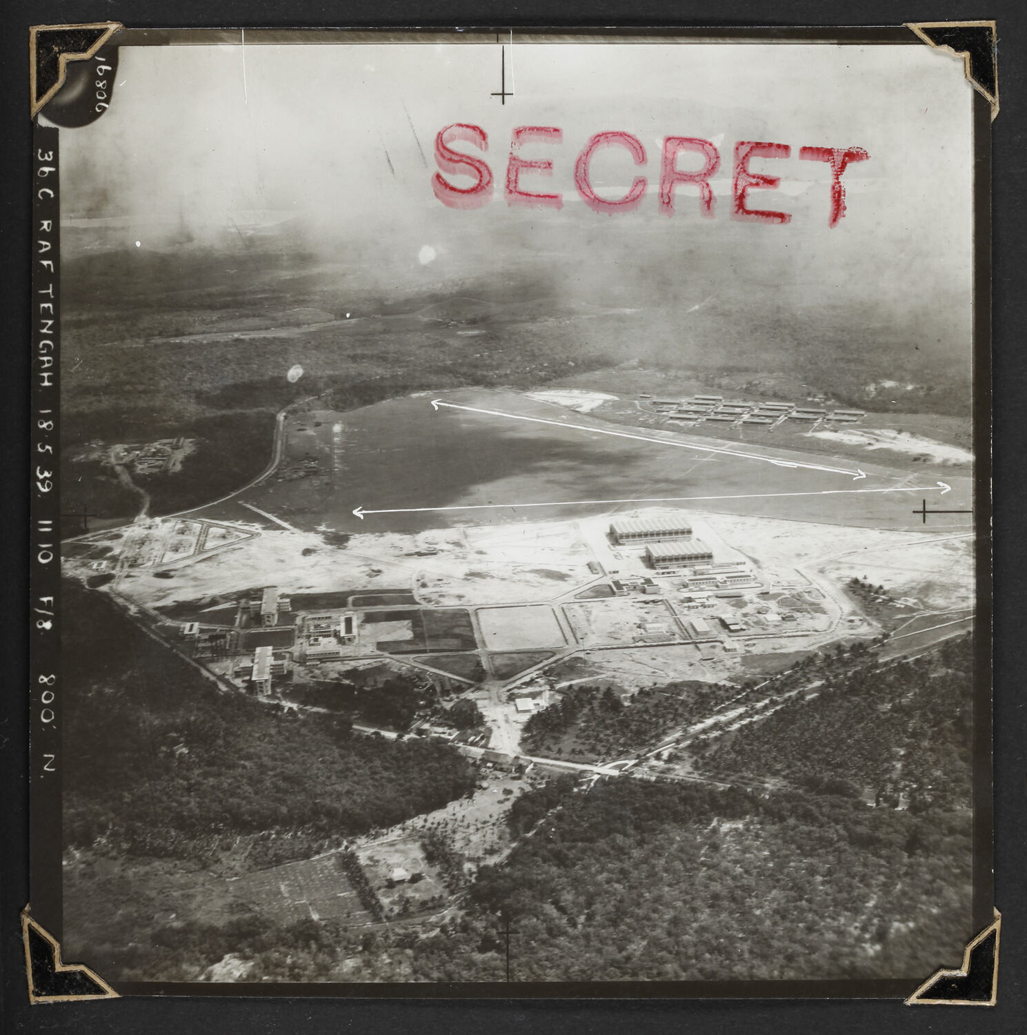 Printed in red ink on the top right hand side of the image; 'SECRET' Hand written on film edge; '16806 / 36 C RAF TENGAH 18 5 39 11 10 f/8 880 N'
