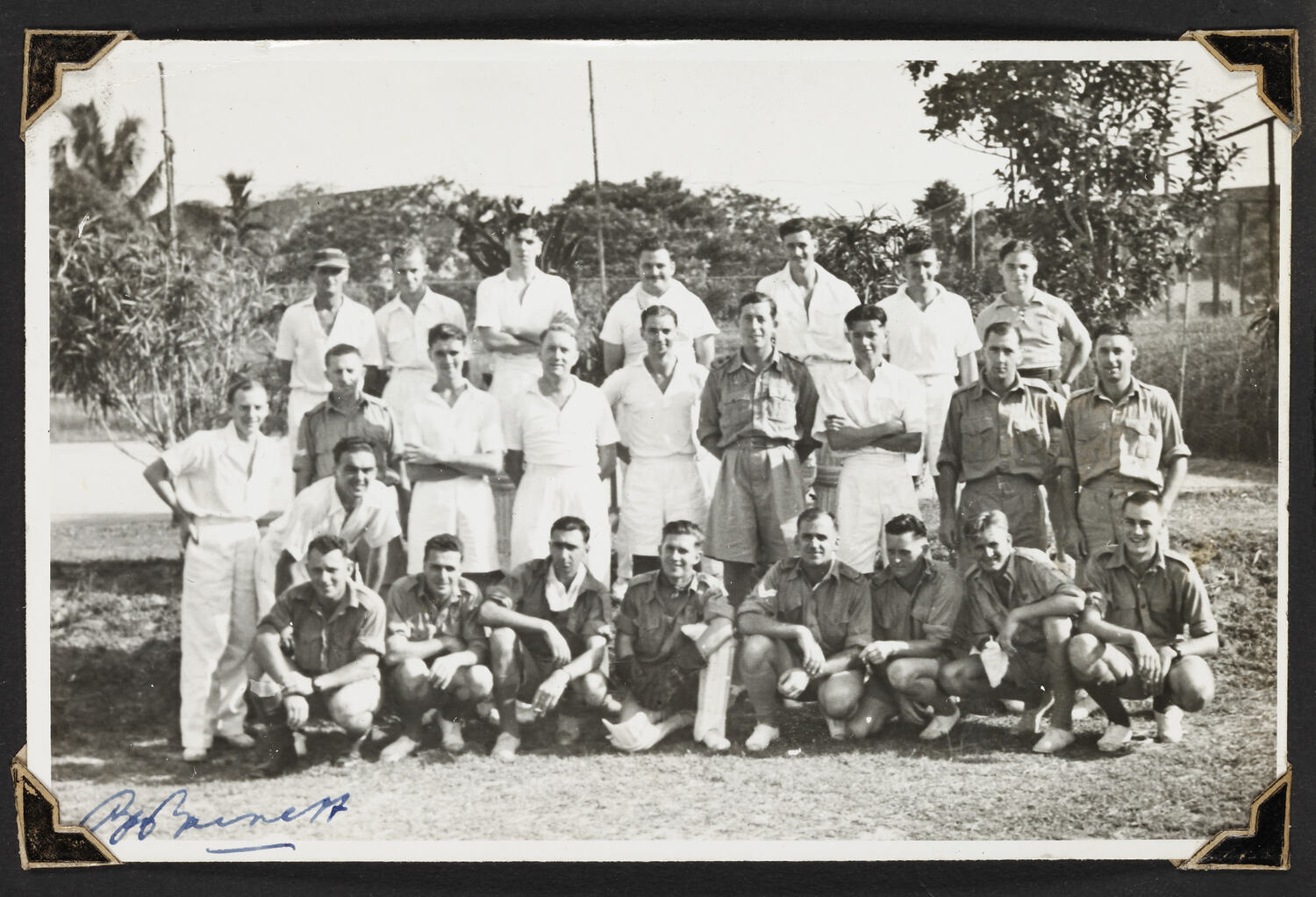 A group photograph of an air force cricket team in Singapore.