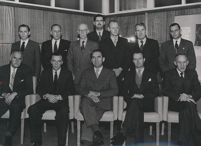 Photographic portrait of Kodak Australasia management staff at Abbotsford, 1954.