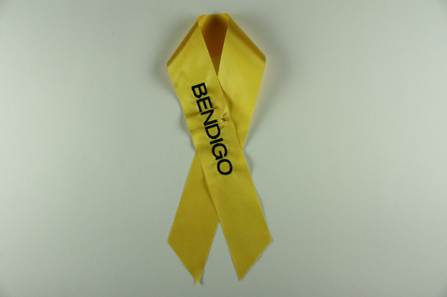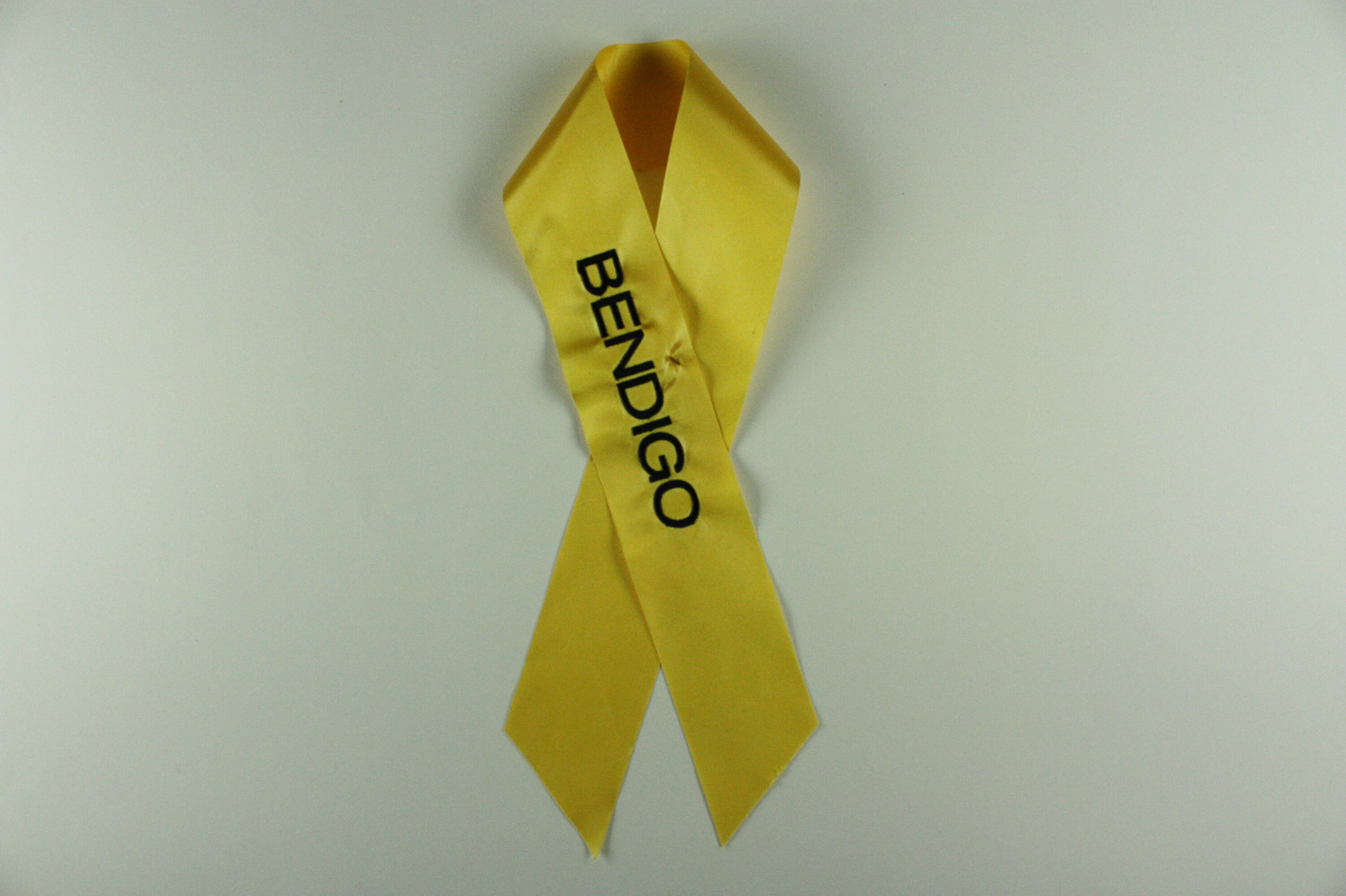 One of 34 pre-printed yellow ribbons placed on 'The Tree of Remembrance' at the 2nd Anniversary Memorial Service to commemorate the 2009 Victorian bushfires. Placed on tree by Julia Gillard, Prime Minister.