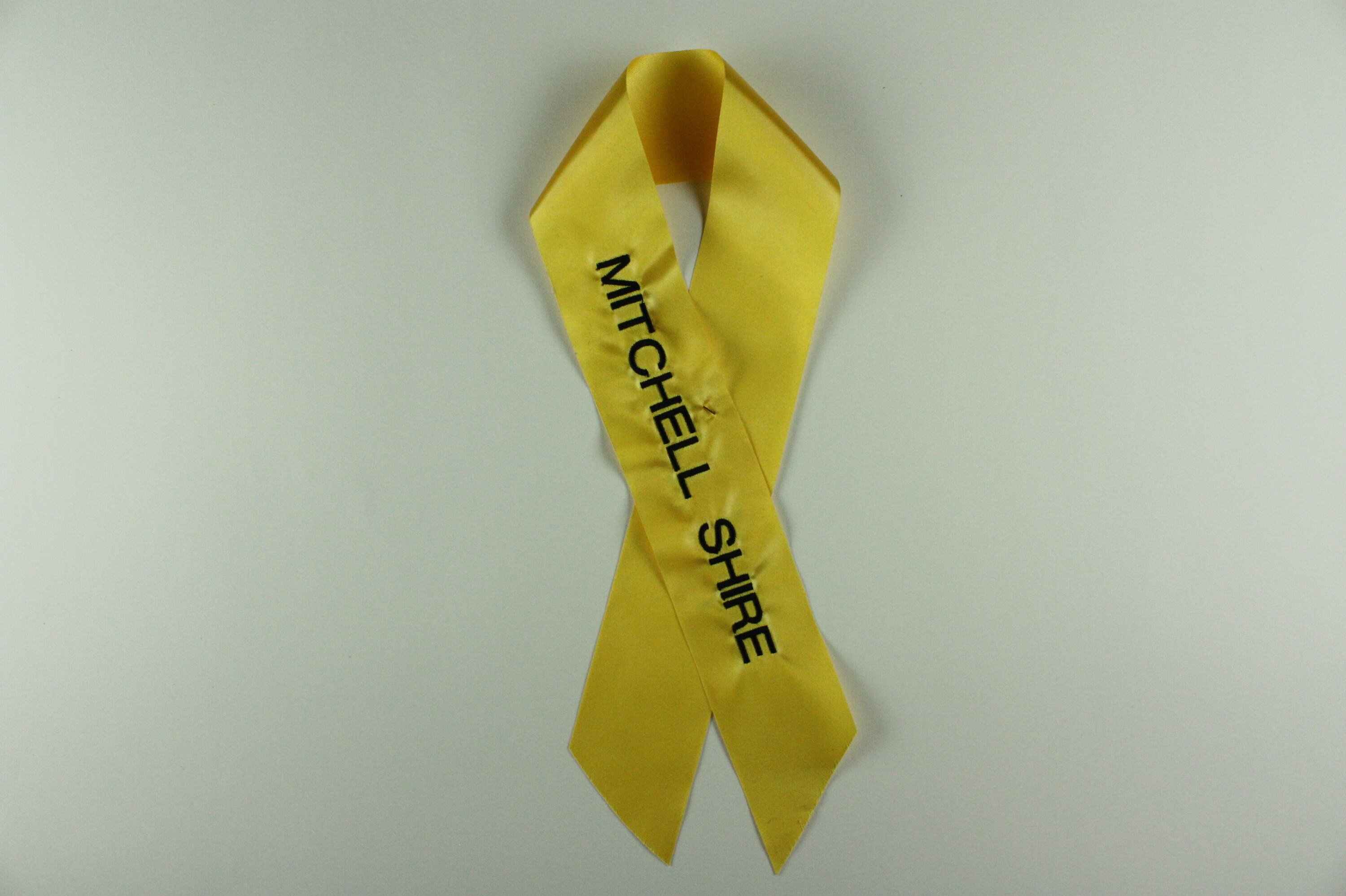 These 34 pre-printed 'Ribbons of Remembrance' ribbons, were created to acknowledge the various communities from across Victoria including the bereaved, and placed on branches of the 'Tree of Remembrance' by community representatives. The communities identified were: Bendigo, Kinglake Ranges, Drouin West, Cardinia, Flowerdale, Indigo, Yarra Ranges, Boolarra & Yinnar, St Andrews & Christmas Hills, Casey, Mitchell Shire, Strath Creek, Labertouche, Hepburn, Longwarry, Whittlesea, Gormandale, Redesdale, Horsham, Marysville & Triangle, Bowman Murmungee, Toolangi & Castella, Balook, Alpine, Corangamite, Melba Group, Jindivick, Southern Grampians, Yarram, Hazelwood-Jeeralang, Strathewen, Traralgon South & District, Mirboo North, Bereaved Community.