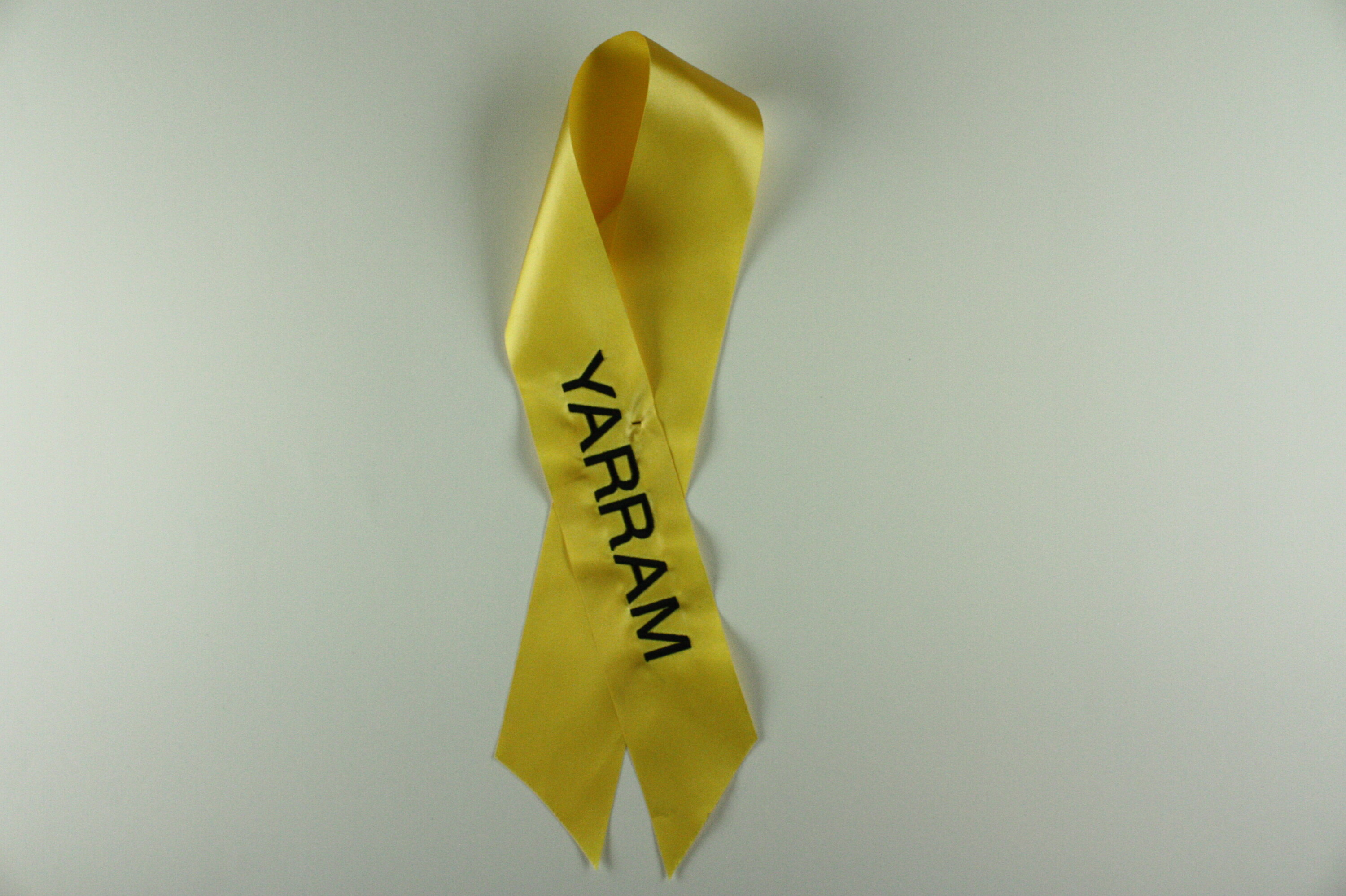 One of 34 pre-printed yellow ribbons placed on 'The Tree of Remembrance' at the 2nd Anniversary Memorial Service to commemorate the 2009 Victorian bushfires. Placed on tree by Emergency for VIP.