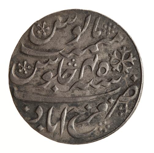 Persian legend (legend translation: Defender of the religion of Muhammad. Shah Alam, Emperor. Shadow of the divine favour, put his stamp on the seven climes)