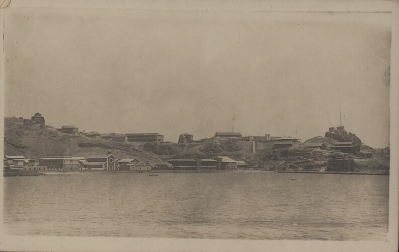 Printed in grey ink on the back of the postcard in the centre : 'POST-CARD / 'CORRESPONDENCE ; ADDRESS ONLY ; B68' Hand-written in black ink on the back of the postcard underneath printed heading: 'Aden'