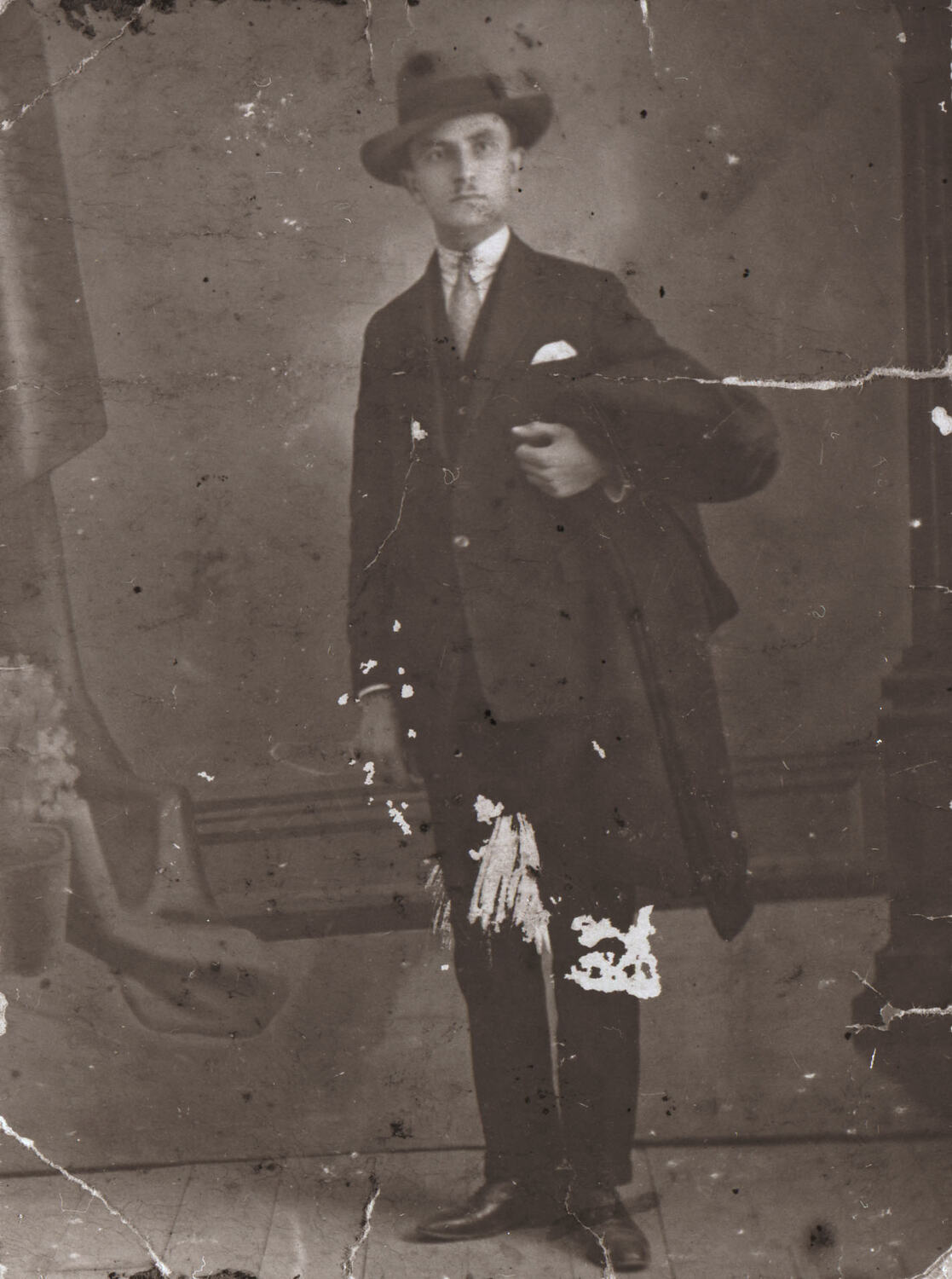 Portrait George Karathanasopoulos (Karras), circa 1940. It is one of seven black and white copy negatives relating to the migration and settlement experiences of brothers Nick and George Karras (Karathanasopoulos) and their families. The brothers first migrated to Australia from Patras, Greece in the 1920s. Nick went back to Greece during the interwar period and when he returned to Australia with his wife and daughter in 1943, he brought with him a trunk, also in the Museum's collection. George's settlement story involves frequent relocation in terms of businesses and homeland, moving between Australia and Greece.
