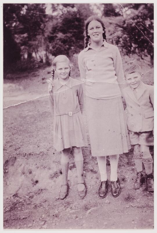 One of three copy photographs. Portrait of Nancy, David and Betty Murdoch, 1933.