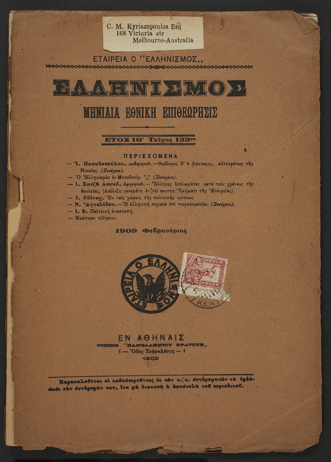 Dr Constantine Kyriazopoulos, Melbourne, Victoria, Australia, 1909