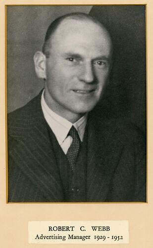 Portrait photograph of Robert C Webb, Advertising Manager between 1929 and 1952. Webb joined the company in 1909 and passed away in September 1952 aged 59.