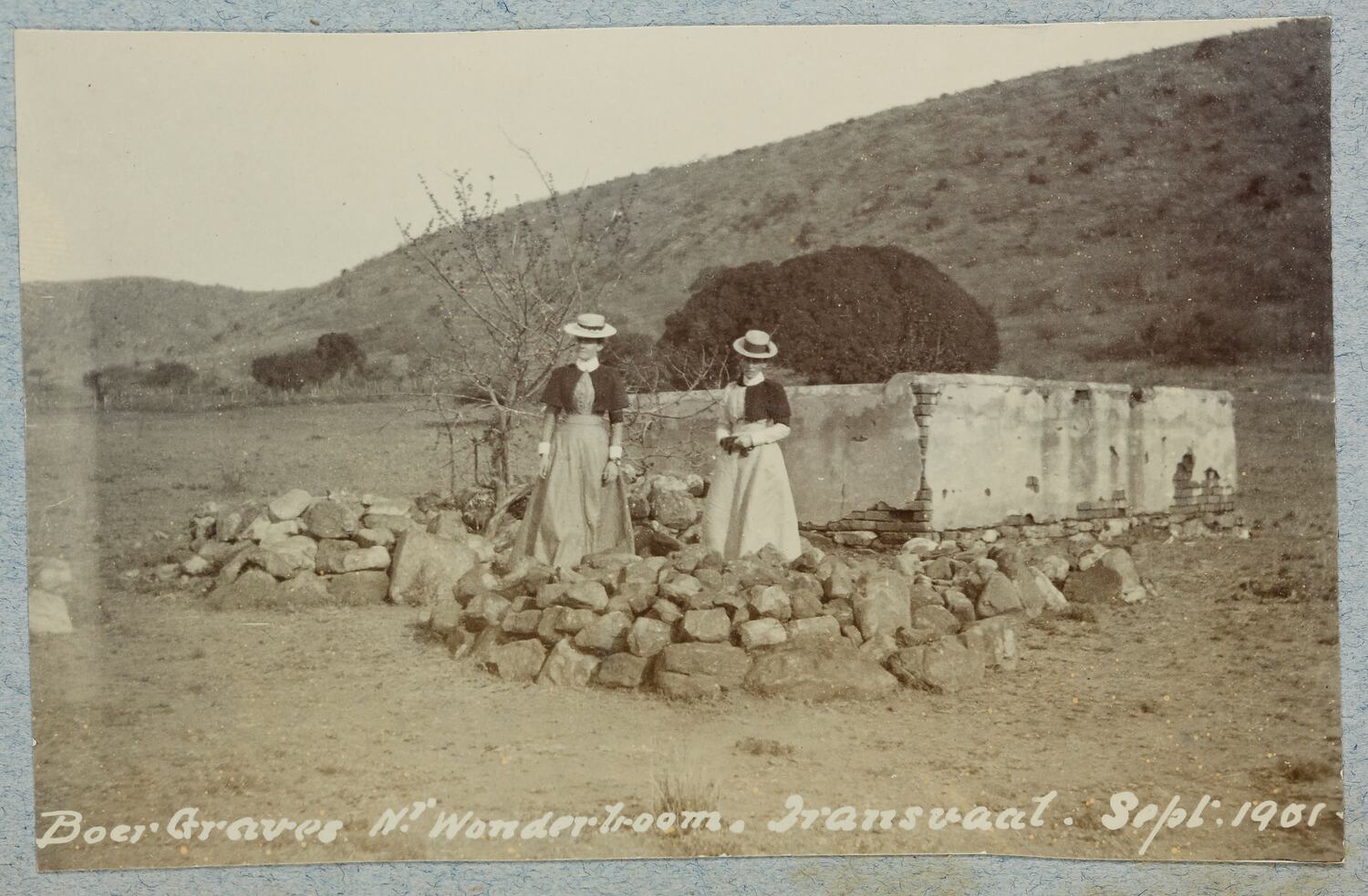 Hand written in black ink on the album page; 'Boer Graves NT Wondertroom. Transvaat. Sept. 1901'