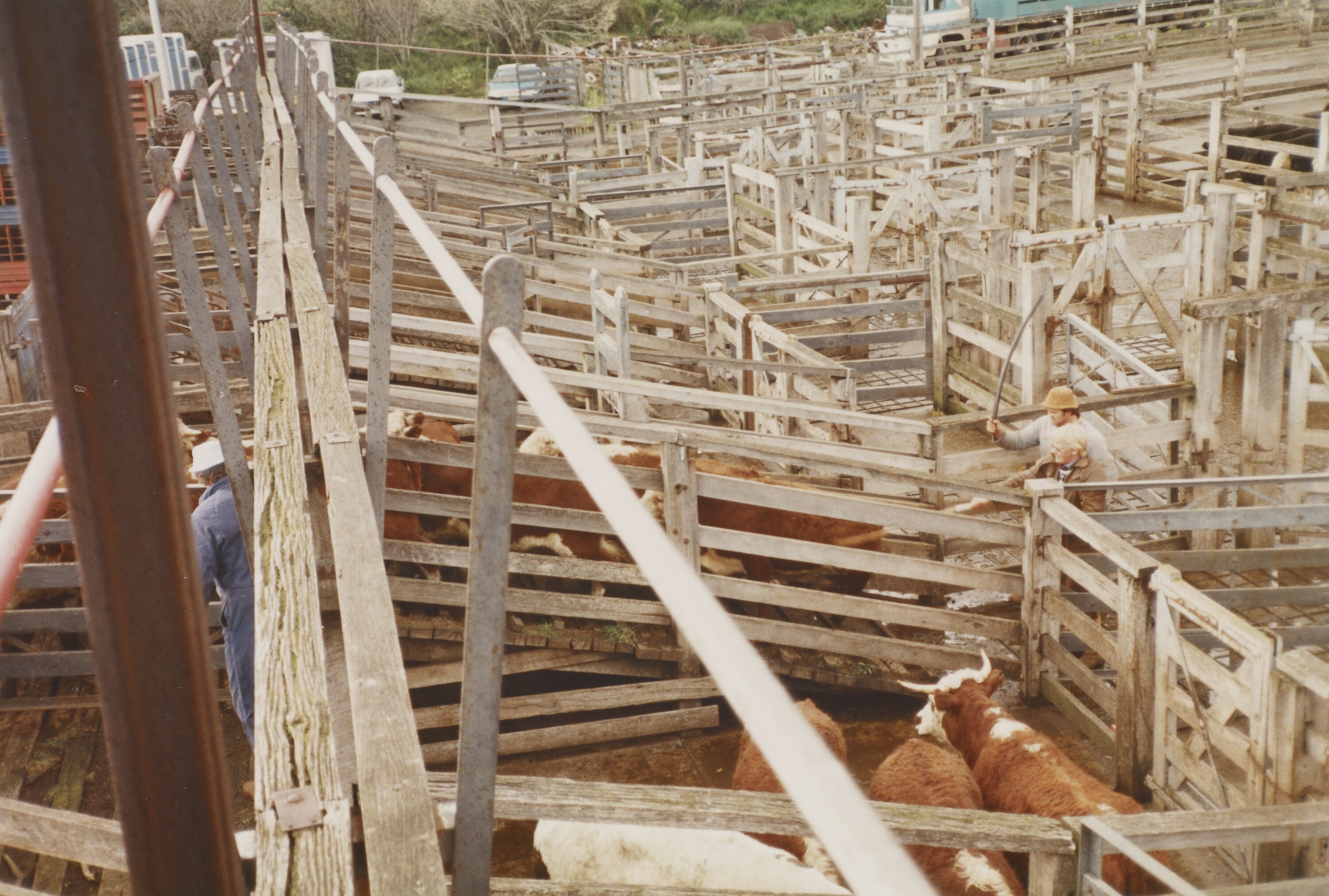 'Last' cattle sales at Newmarket Saleyards, depicting the walkway above the cattle pens.