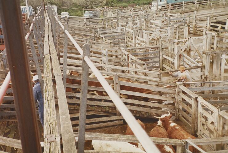 This collection is a rare visual document of the Newmarket Saleyards in the final few years leading up to and including the final stock auctions in 1987. The photographs provide insight into the day to day work, organisation and physical nature of the saleyard site, and its proximity to Melbourne suburbs and CBD. These images also help provide a context for interpreting a number of the artefacts in the Newmarket collection.