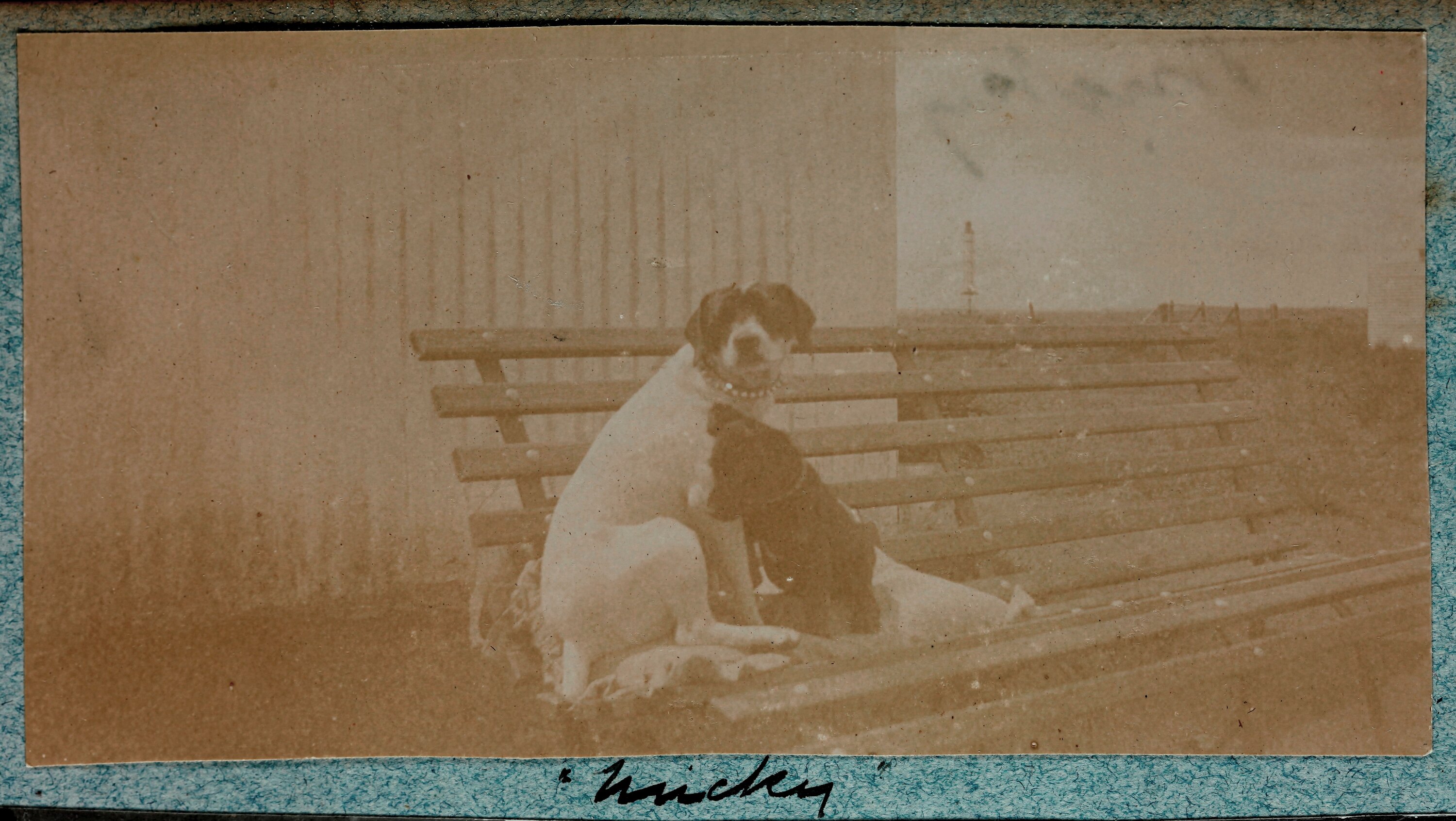 Hand written in black ink on the album page; '"Micky"'