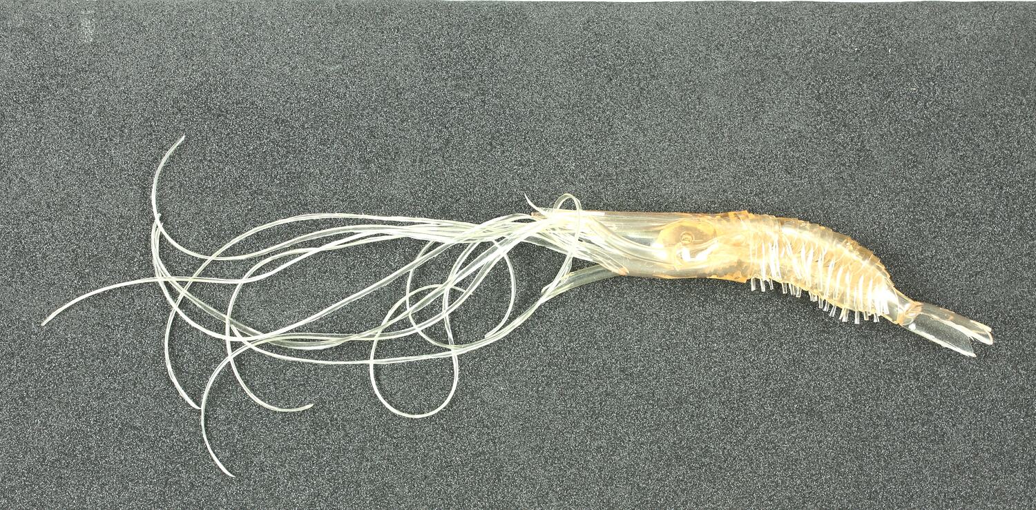 This squid keyring was crafted from recycled plastic by refugees in Phanat Nikhom Camp in Thailand. It is one of only two surviving keyrings that were given to Department of Immigration Senior Migration Officer Jennie Roberts, between 1987 and 1989 when she was working in various refugee camps in Thailand.