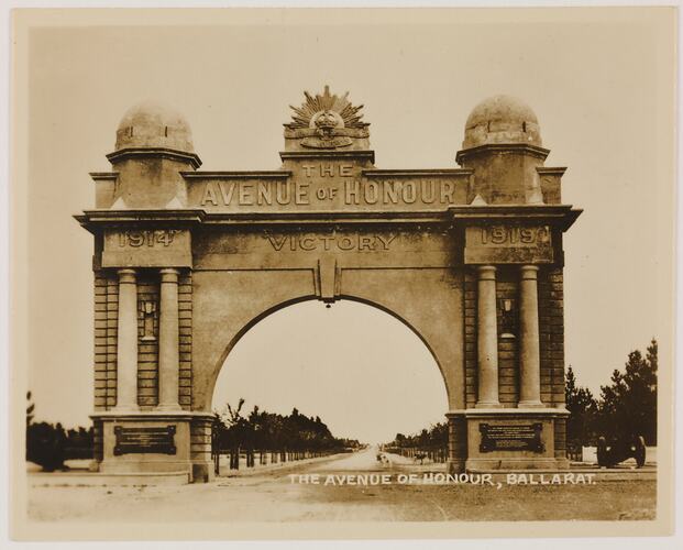 Printed in white on the front of the photograph; 'THE AVENUE OF HONOUR, BALLARAT.'