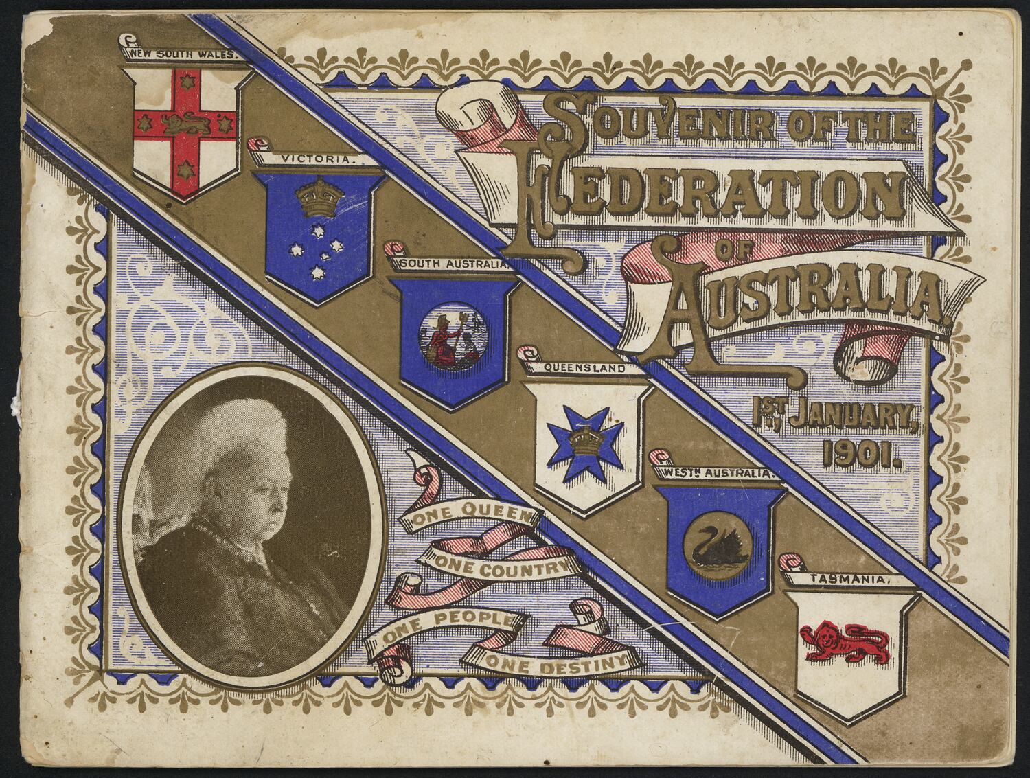 Printed on front cover: SOUVENIR OF THE/ FEDERATION/ OF/ AUSTRALIA./ 1ST, JANUARY,/ 1901./ ONE QUEEN/ ONE COUNTRY/ ONE PEOPLE/ ONE DESTINY