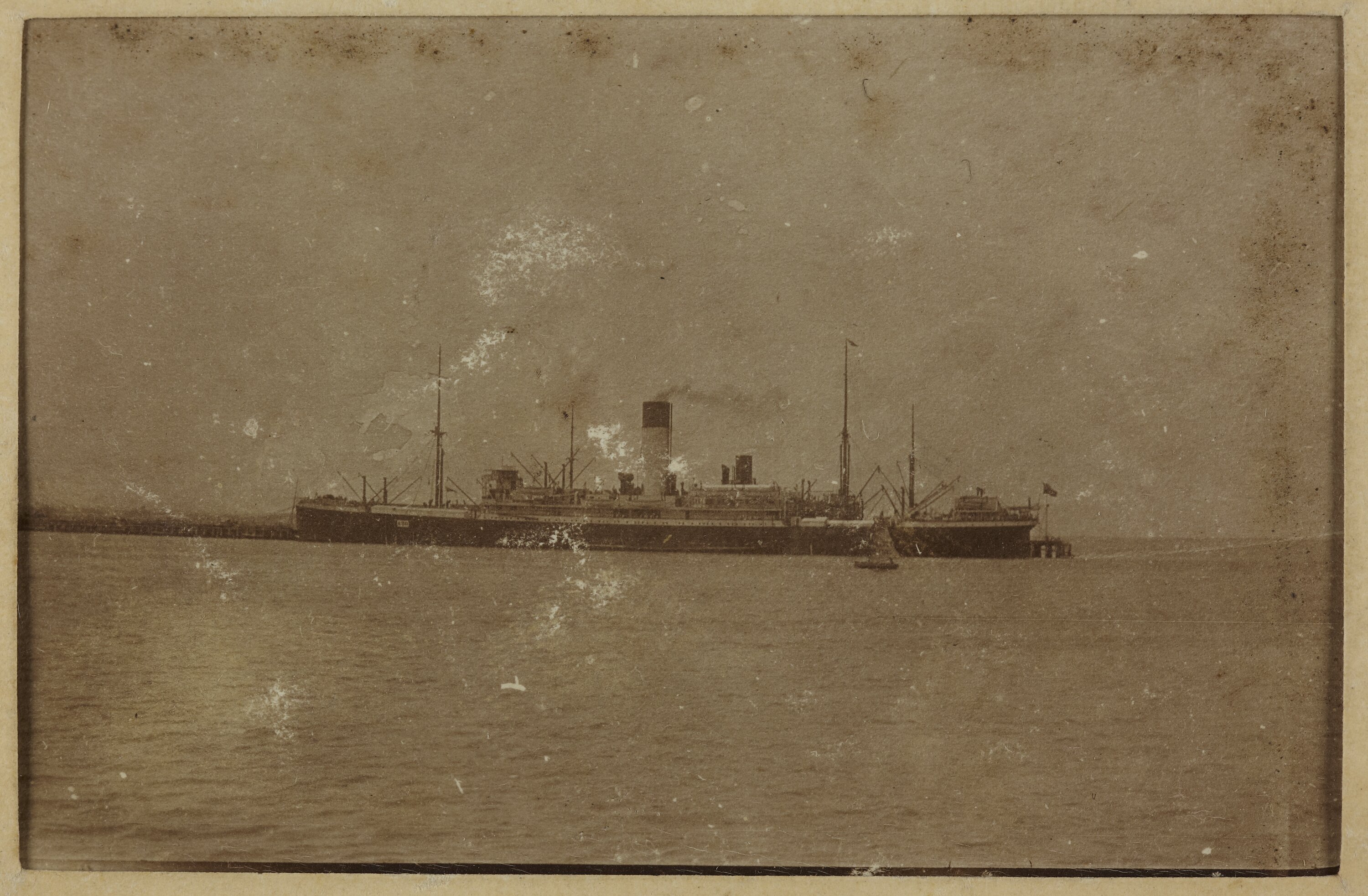 One of 21 black and white photographs contained in a Kodak photograph album. Many images were taken on board T.S.S. Ceramic in 1915, World War I era. About 27 further photographs missing or removed.