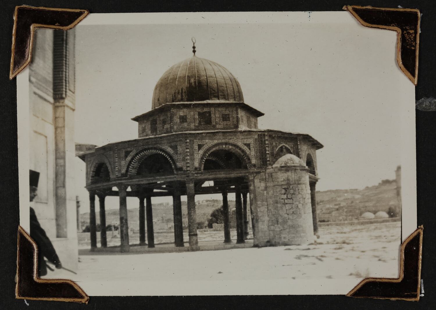 Hand written in white ink on the album page; 'MOSQUE OF THE CHAIN / OUTSIDE MOSQUE OF OMAR.'