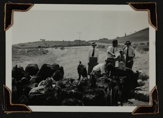 Black and white silver gelatin photograph contained in a photograph album. Photograph in mounted with brown photo corners.