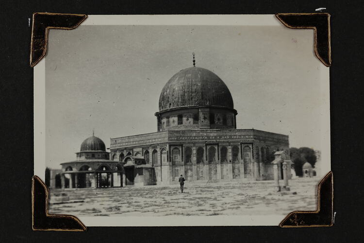 Hand written in white ink on the album page; 'MOSQUE OF OMAR IN THE OLD CITY / OF JERUSALEM.'