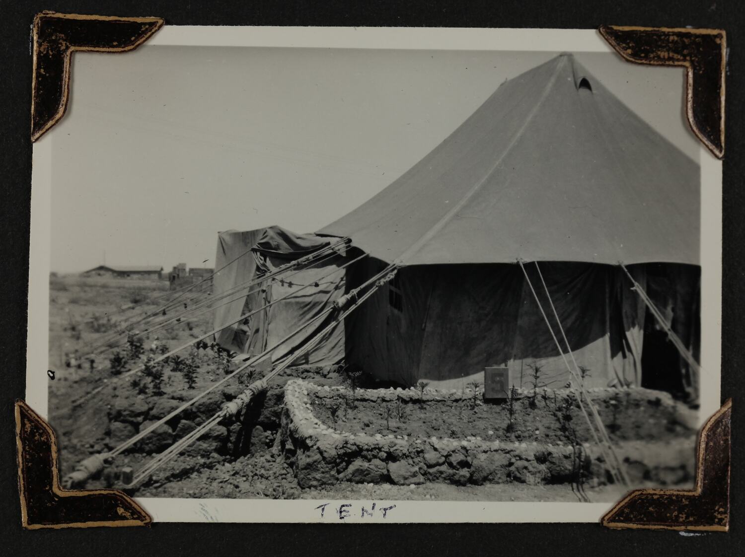 One of 135 black and white photographs contained in a World War II-era photograph album, featuring photographs of Sister Isabel Erskine Plante in uniform, on service views of the Middle East and New Guinea - World War II.