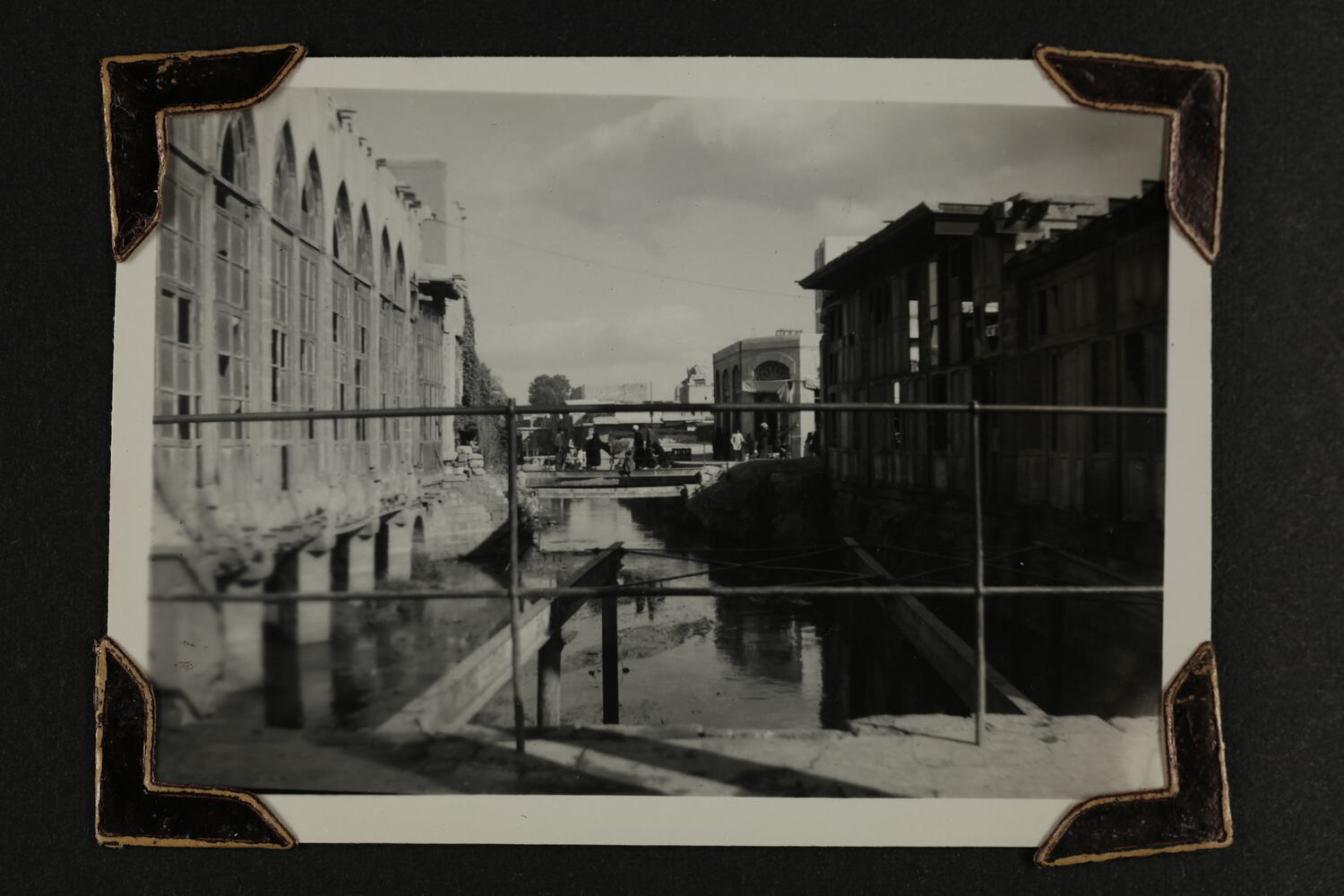 Hand written in black ink on the photograph; 'RIVER IN THE MAIN STREET OF DAMASCUS.'