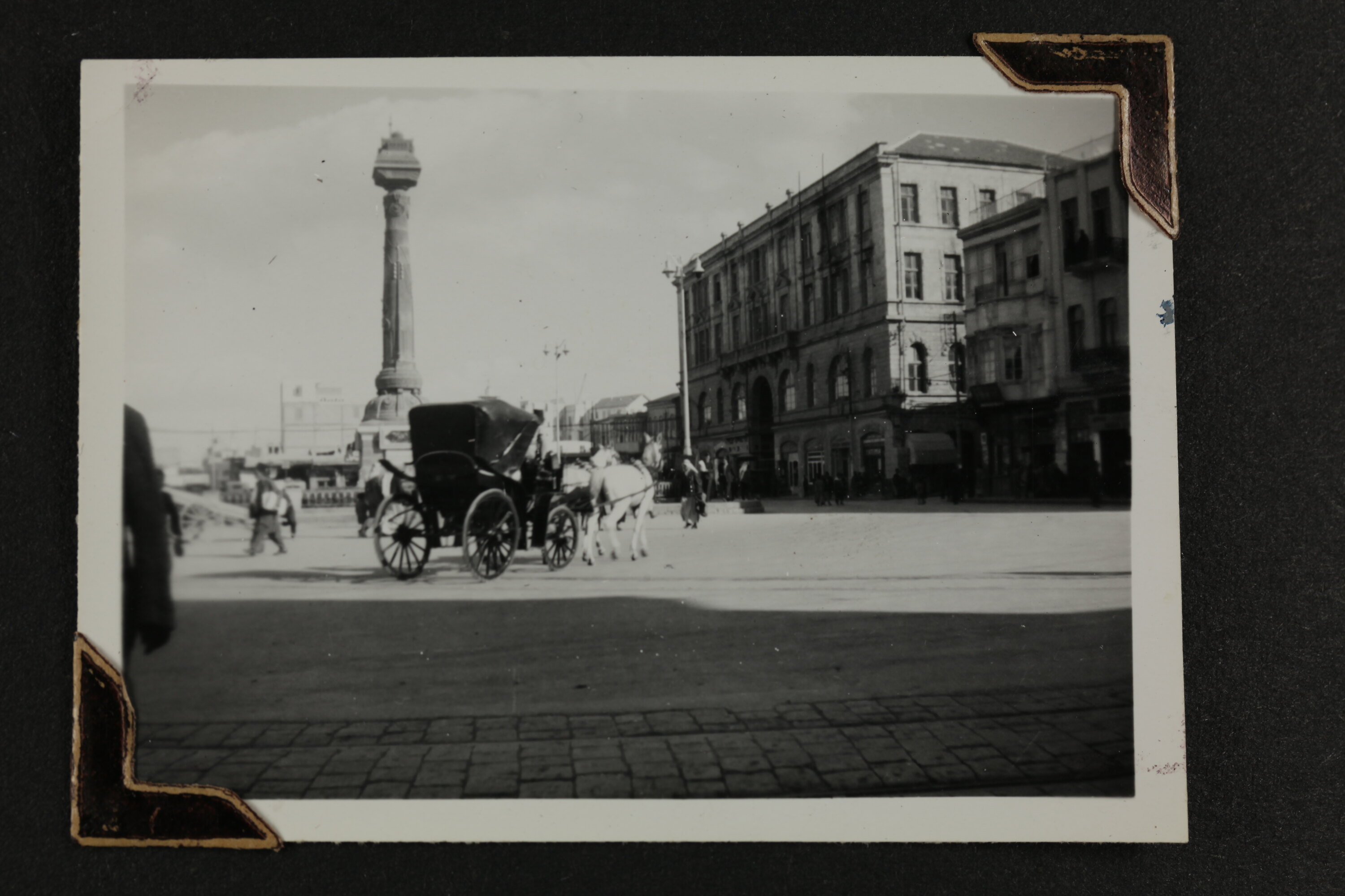 Hand written in black ink on the photograph; 'SQUARE OUTSIDE THE PALACE HOTEL / AT DAMASCUS.'