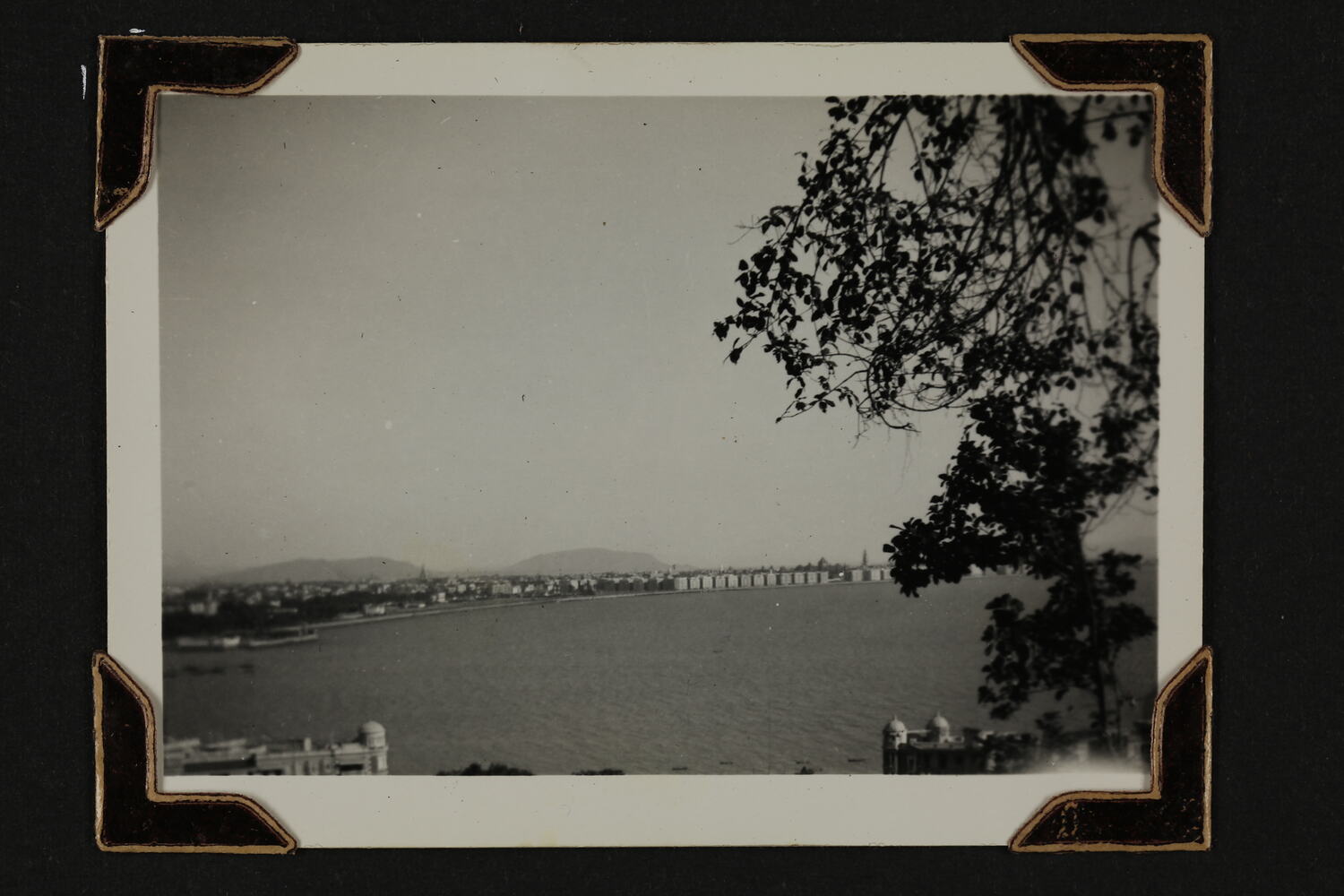 Black and white silver gelatin photograph contained in a photograph album. Photograph in mounted with brown photo corners.