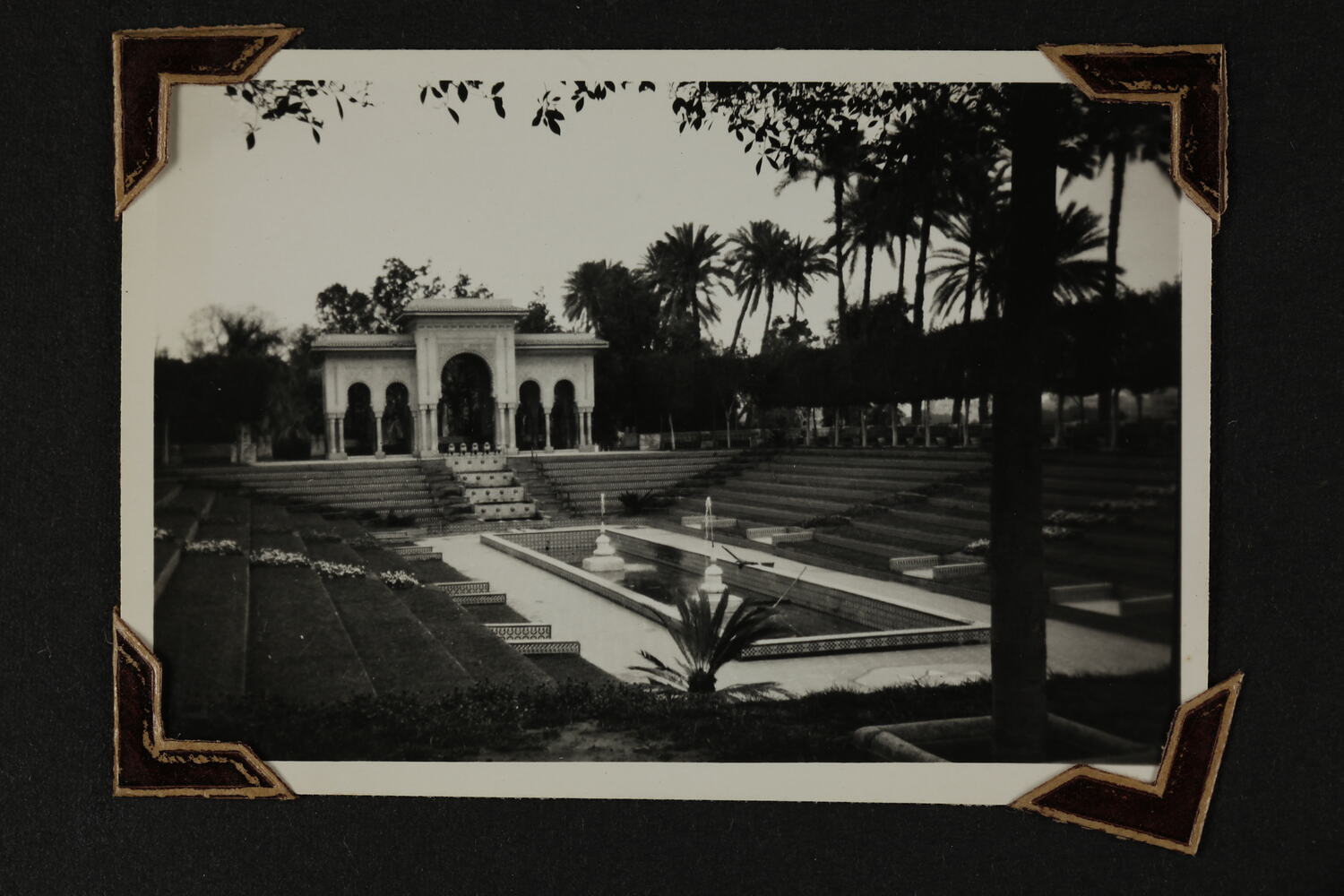 View of a fountain and pool in a persian garden at Cairo.