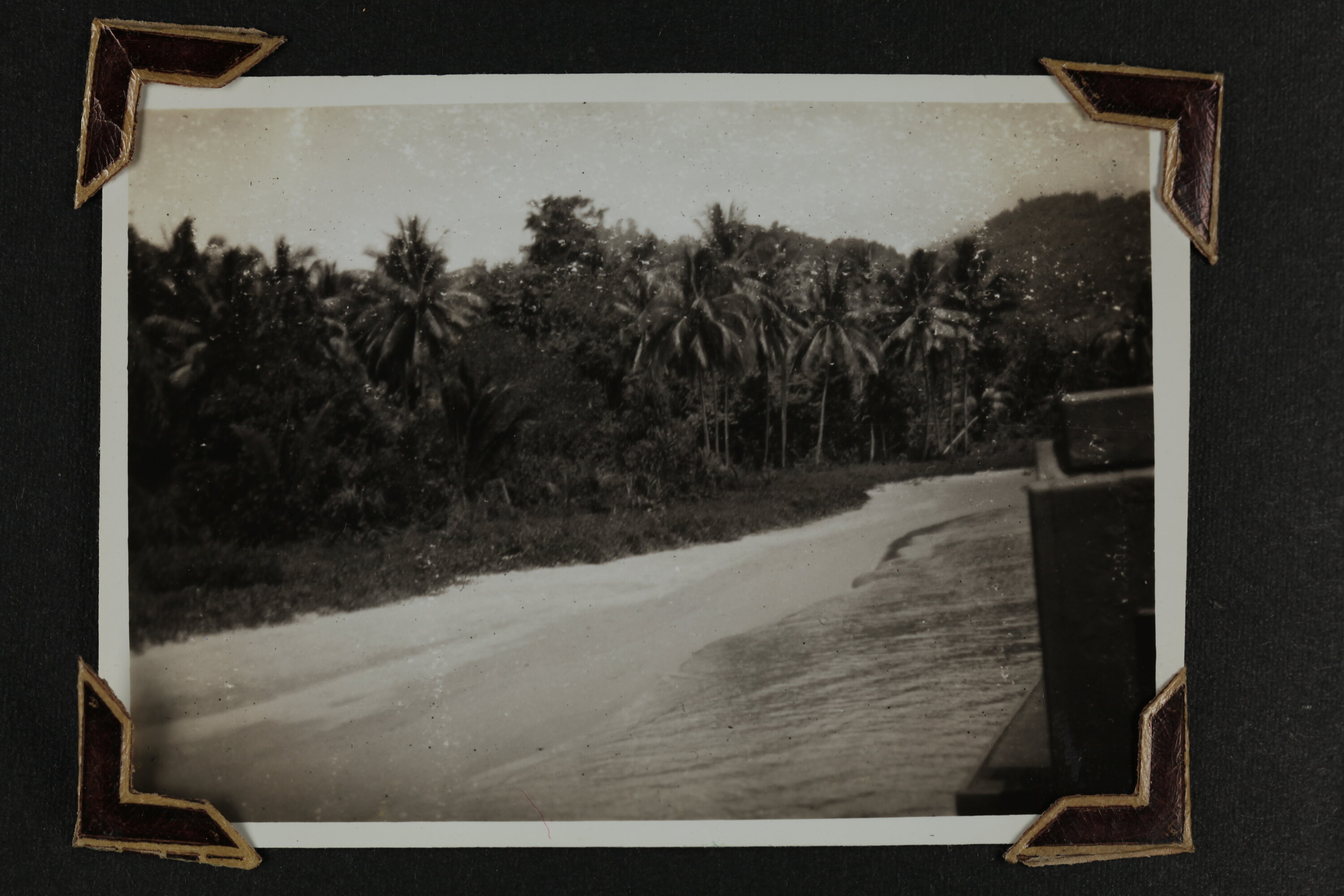 Black and white silver gelatin photograph contained in a photograph album. Photograph in mounted with brown photo corners.