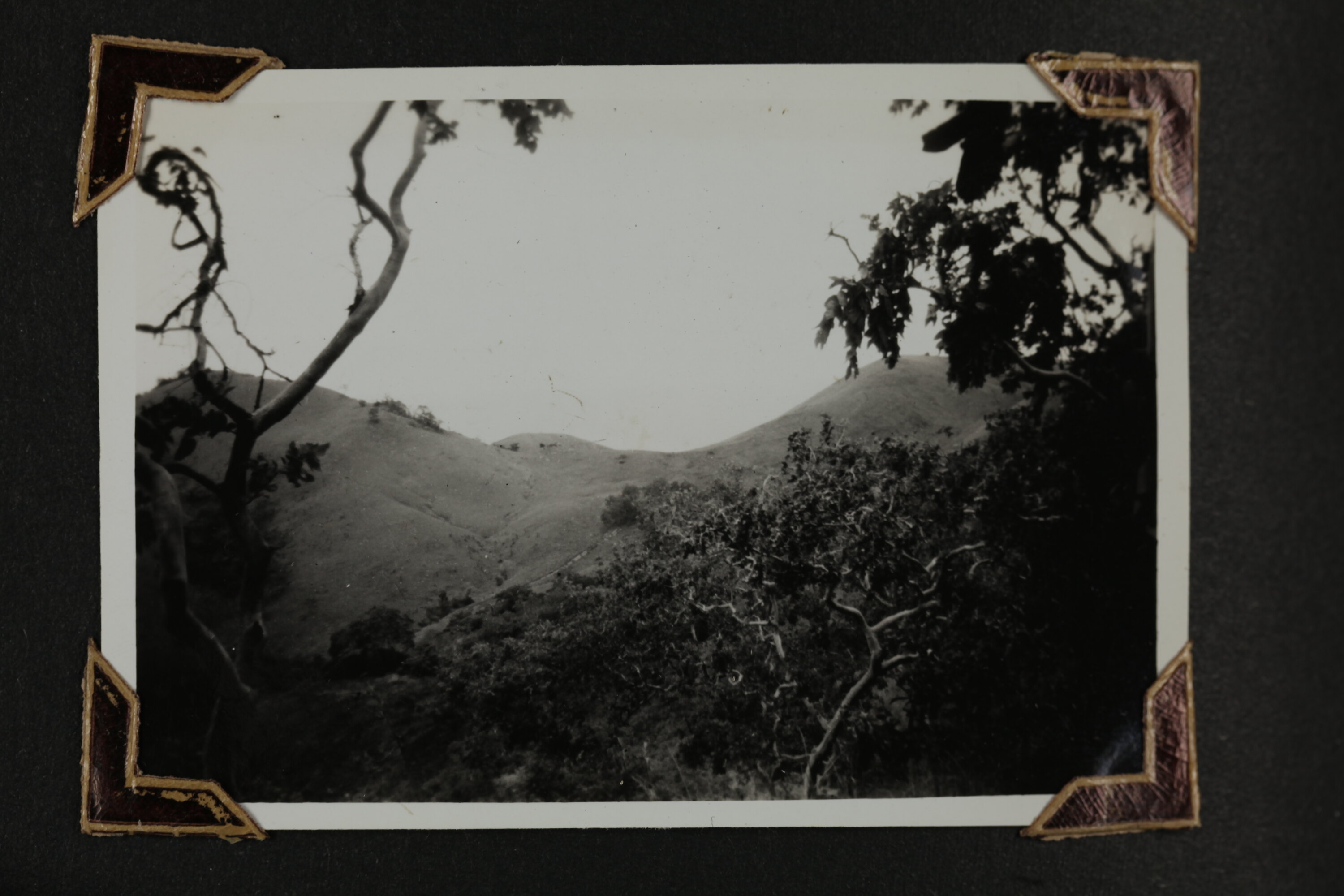 Black and white silver gelatin photograph contained in a photograph album. Photograph in mounted with brown photo corners.
