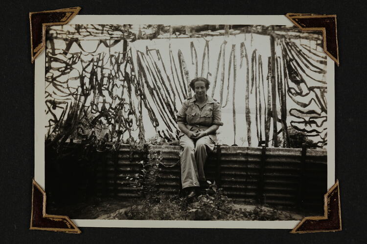 One of 135 black and white photographs contained in a World War II-era photograph album, featuring photographs of Sister Isabel Erskine Plante in uniform, on service views of the Middle East and New Guinea - World War II.