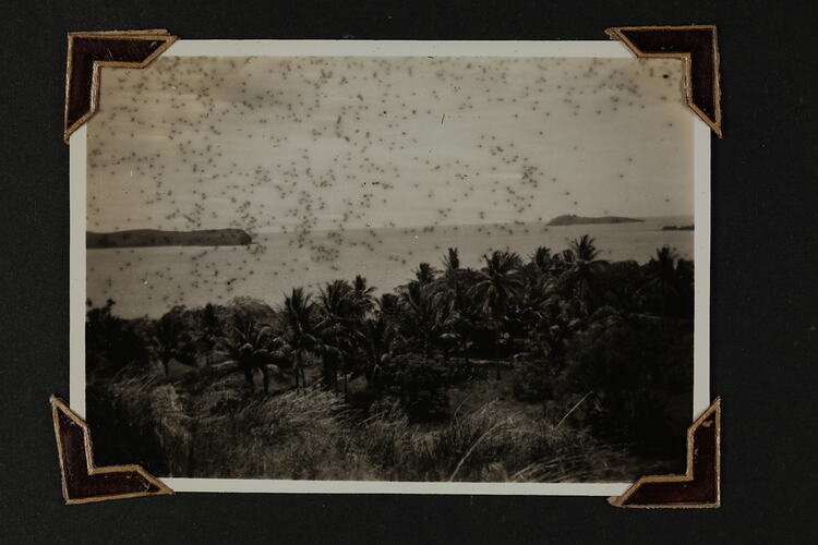 Black and white silver gelatin photograph contained in a photograph album. Photograph in mounted with brown photo corners.