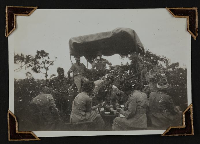 Black and white silver gelatin photograph contained in a photograph album. Photograph in mounted with brown photo corners.