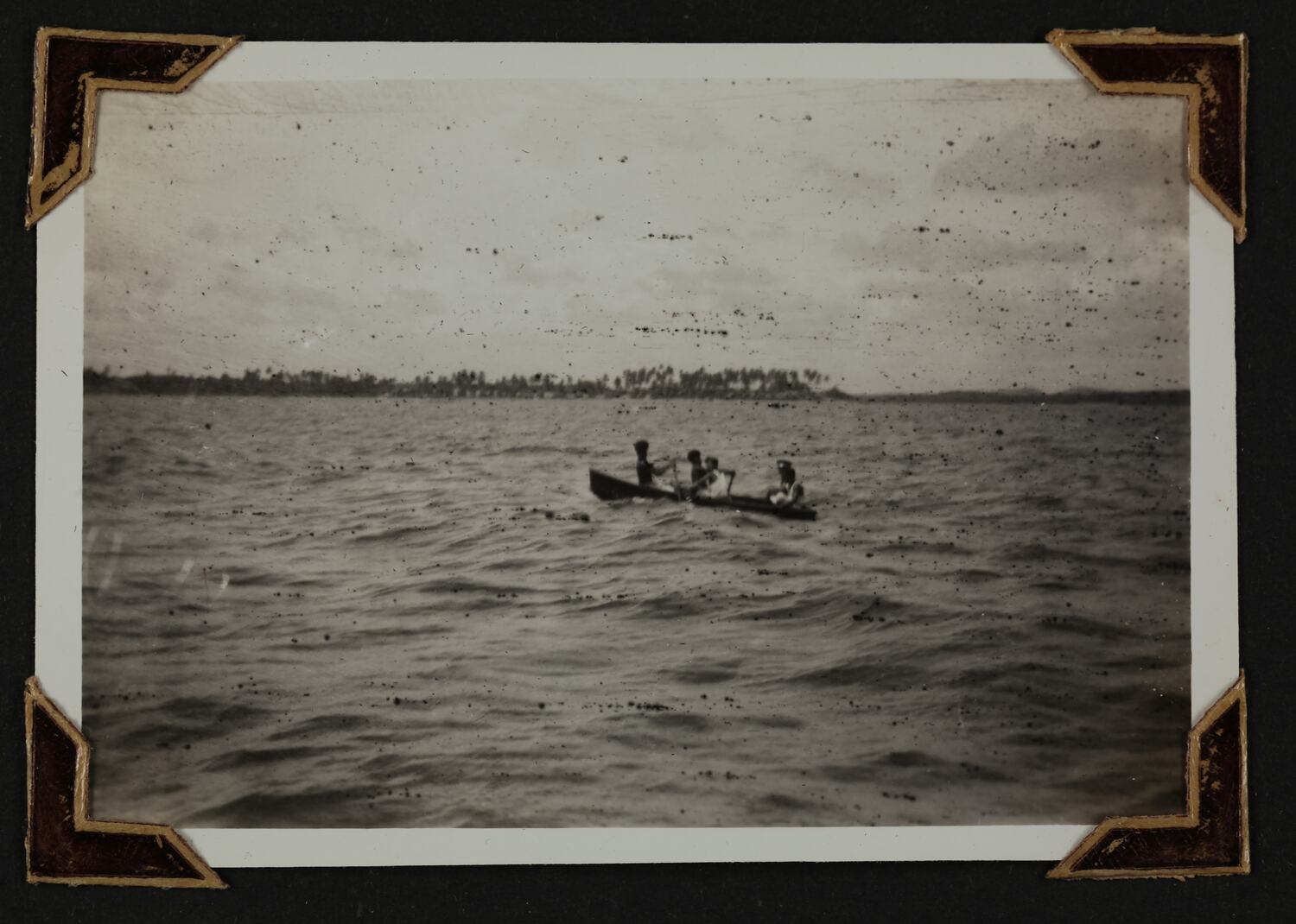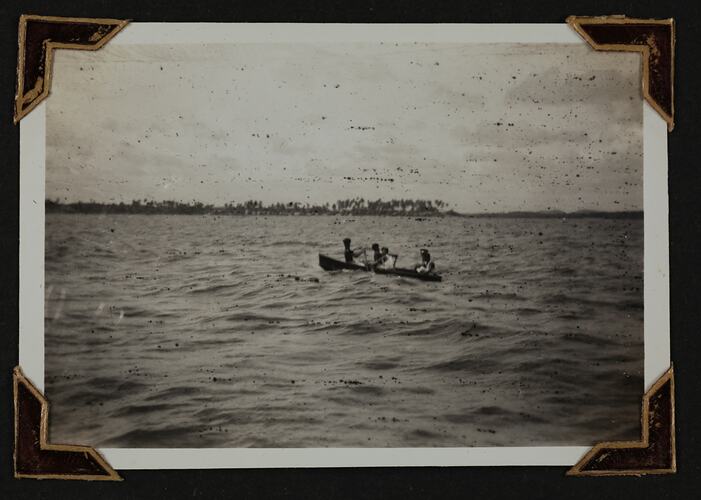 Black and white silver gelatin photograph contained in a photograph album. Photograph in mounted with brown photo corners.