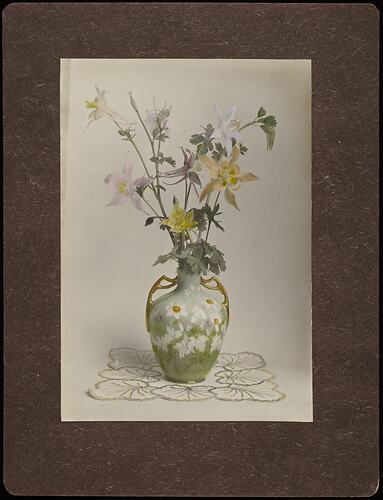 Hand coloured photograph mounted on cardboard