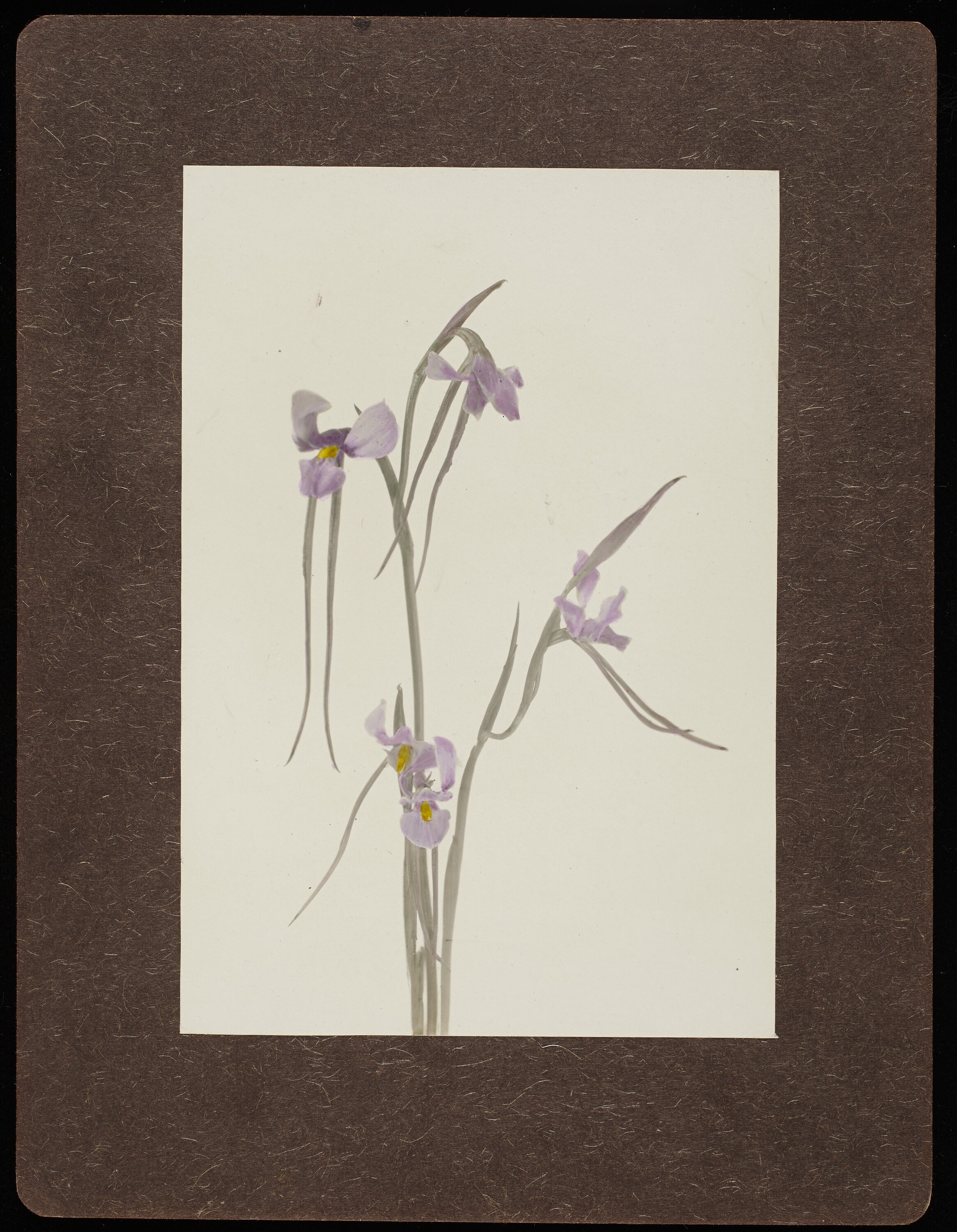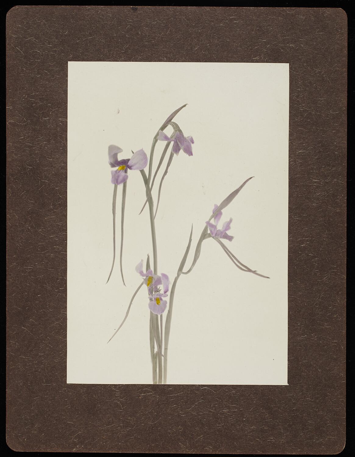 Part of a collection of images of plants and flowers taken by Robert Harvie: 18 glass positives, one hand coloured; 46 sets of stereographs, each set consisting of two individual, identical photographs [Note two sets only have one photograph] of selected handpainted photographs of flowers, a still life with fruit and a river scene.