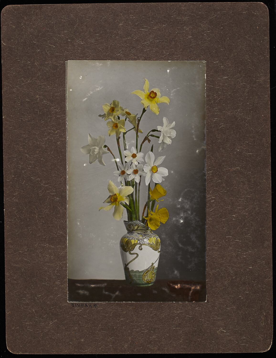 Hand coloured photograph mounted on cardboard