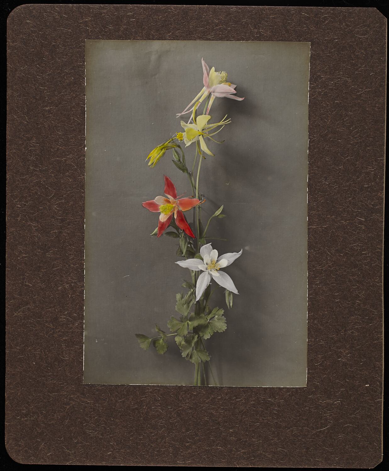 Hand coloured photograph mounted on cardboard.