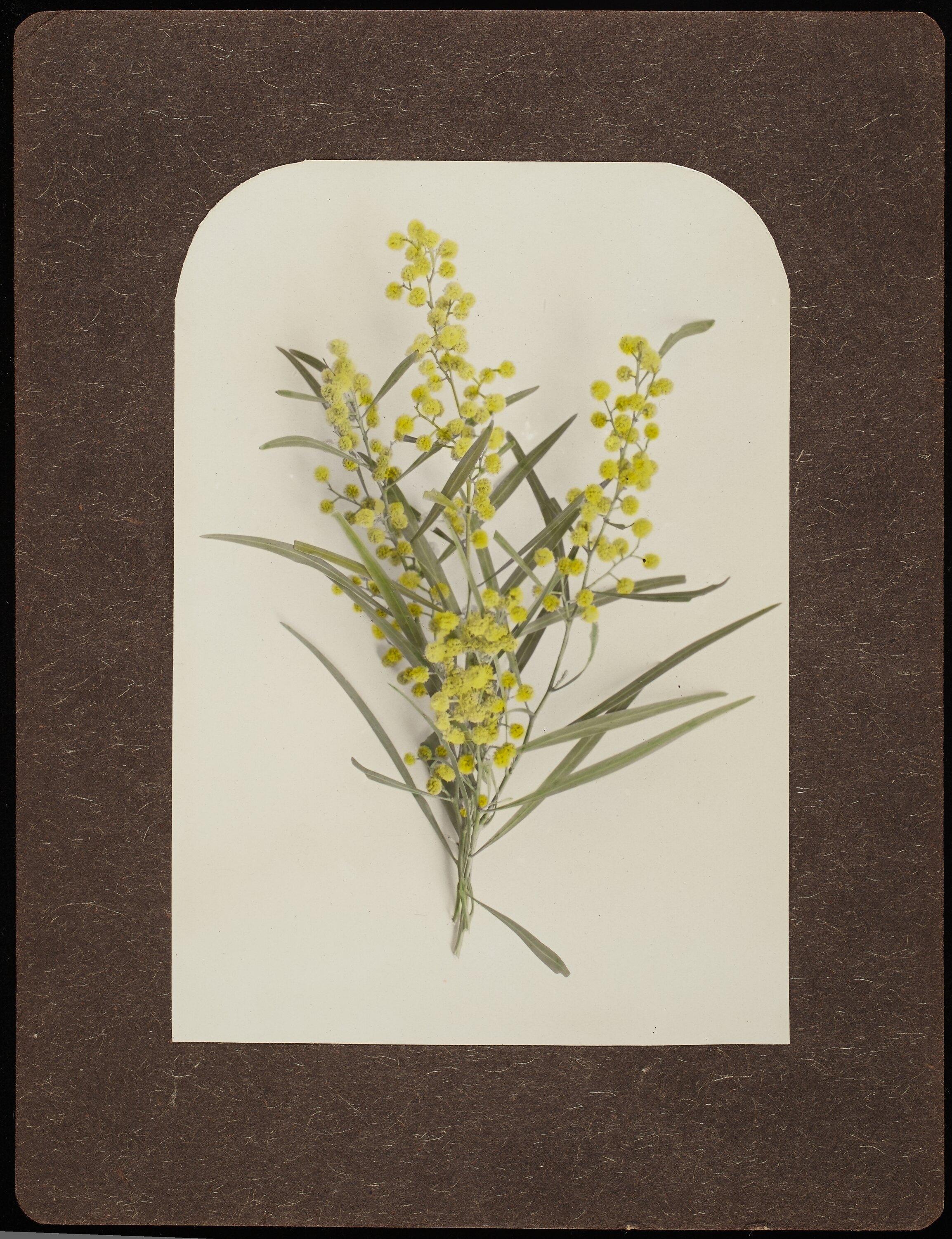 Part of a collection of images of plants and flowers taken by Robert Harvie: 18 glass positives, one hand coloured; 46 sets of stereographs, each set consisting of two individual, identical photographs [Note two sets only have one photograph] of selected handpainted photographs of flowers, a still life with fruit and a river scene.