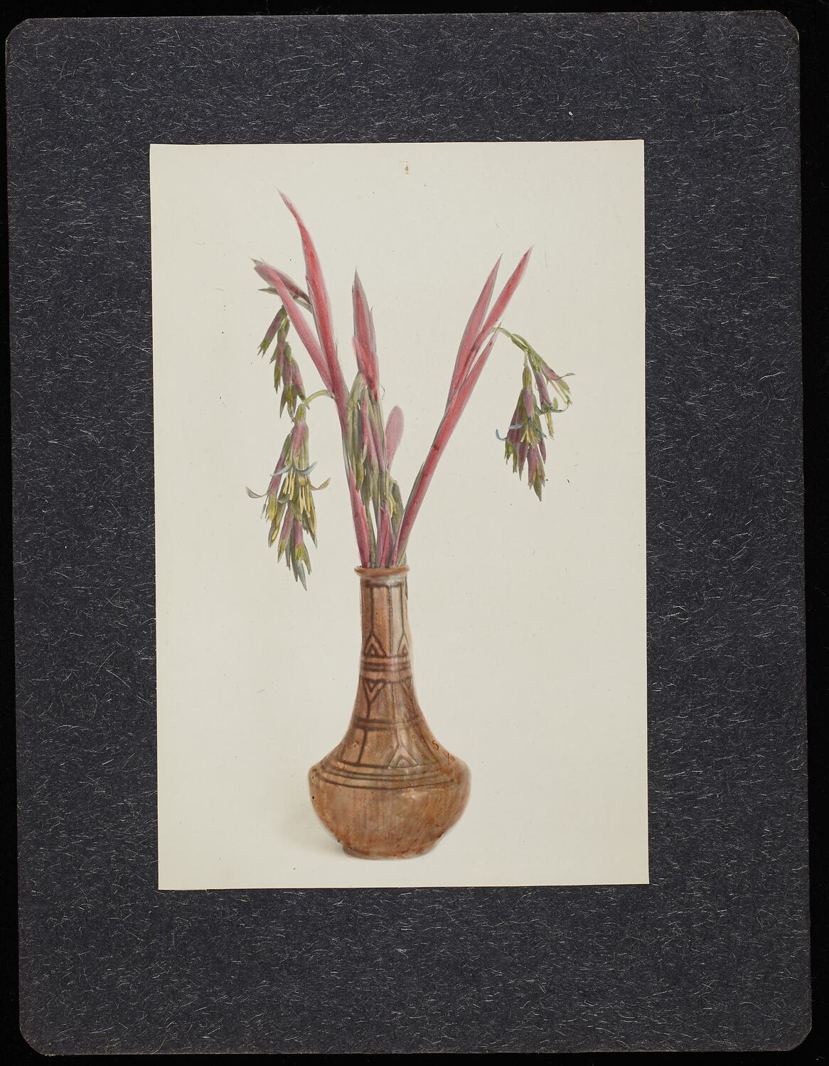 Hand coloured photograph mounted on cardboard.