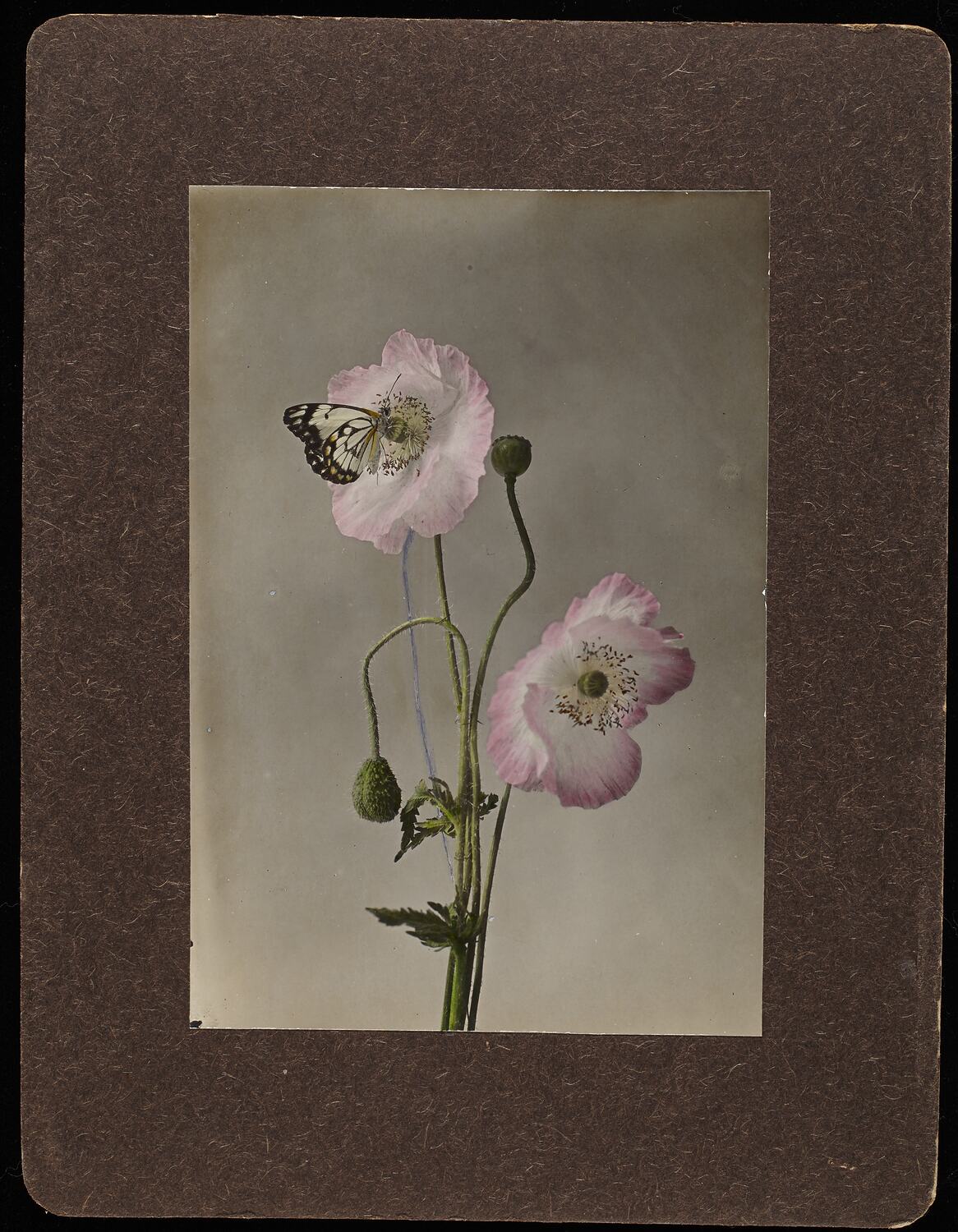 Hand coloured photograph mounted on cardboard.
