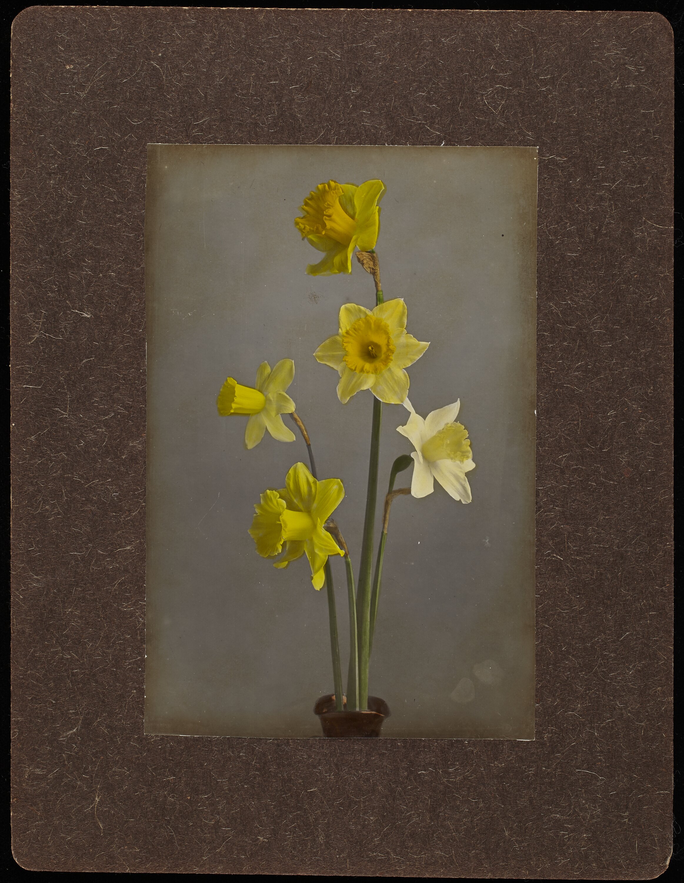 Hand coloured photograph mounted on cardboard.