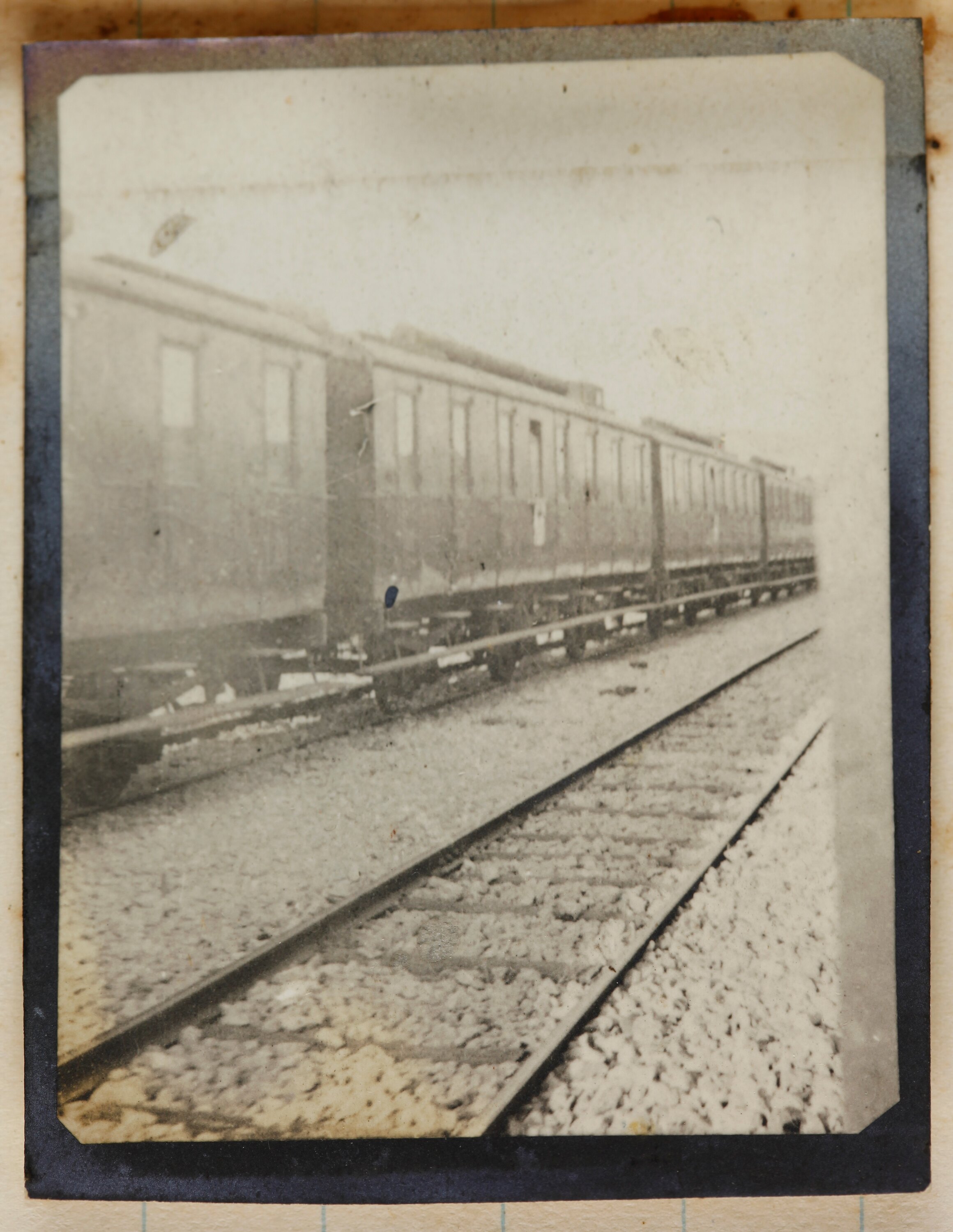 These photographs provide a record of some of the objects and places that John Lord saw in Belgium and France and the places that interested him most. These include Army camps, Chateau, trains, a plane, local people, other soldiers, horses and trucks. From the list of Lord's subjects, we can see that these photographs were taken in 'time off' that is to say, taking photographs took some time and these images depict people and places removed from battle, for example, soldiers photographed beside a Chatéau.