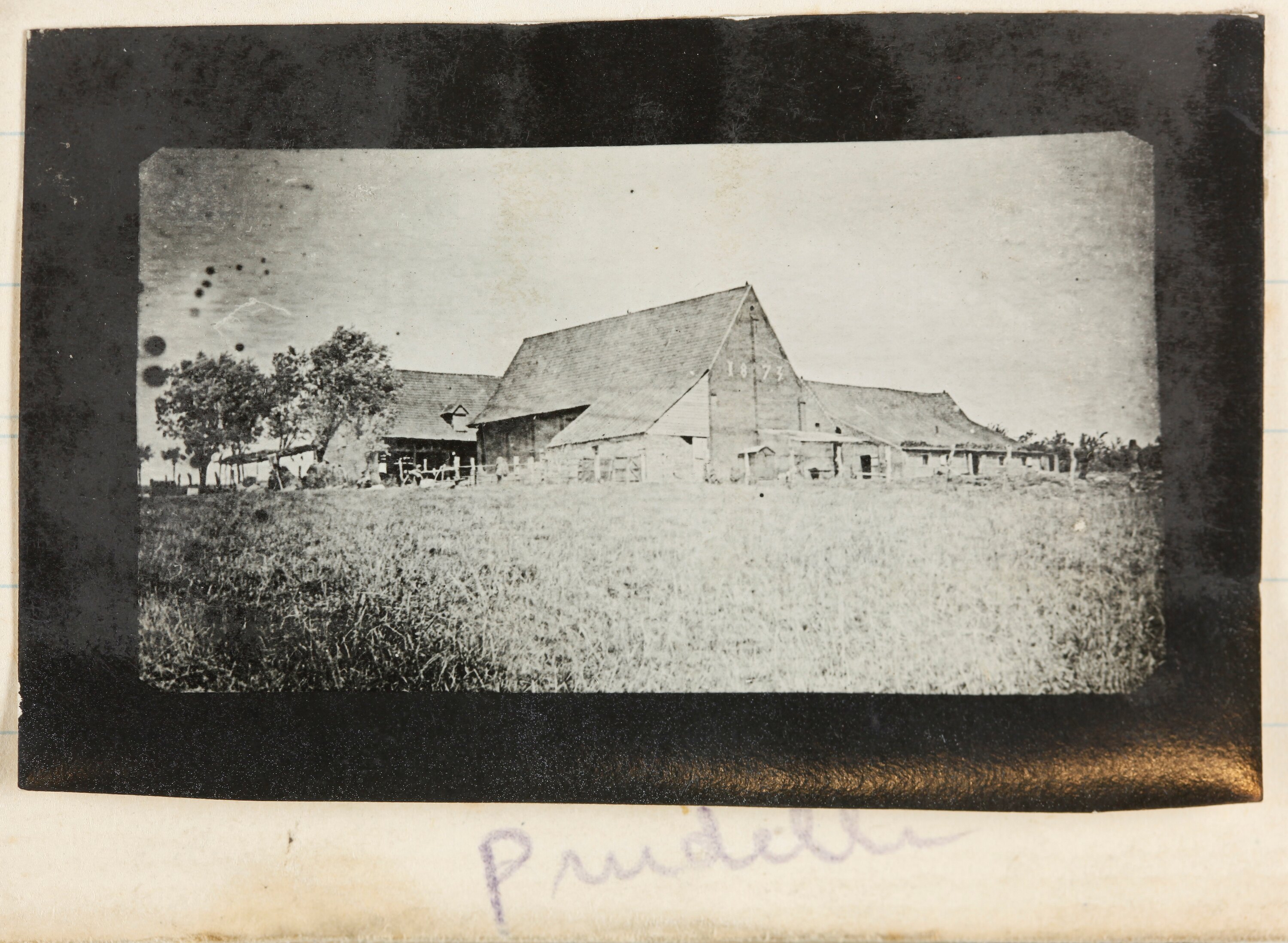 Hand written in grey pencil to the left of the photograph on the album page; '588' Hand written in blue ink below the photograph on the album page; 'Prudell [sic]'