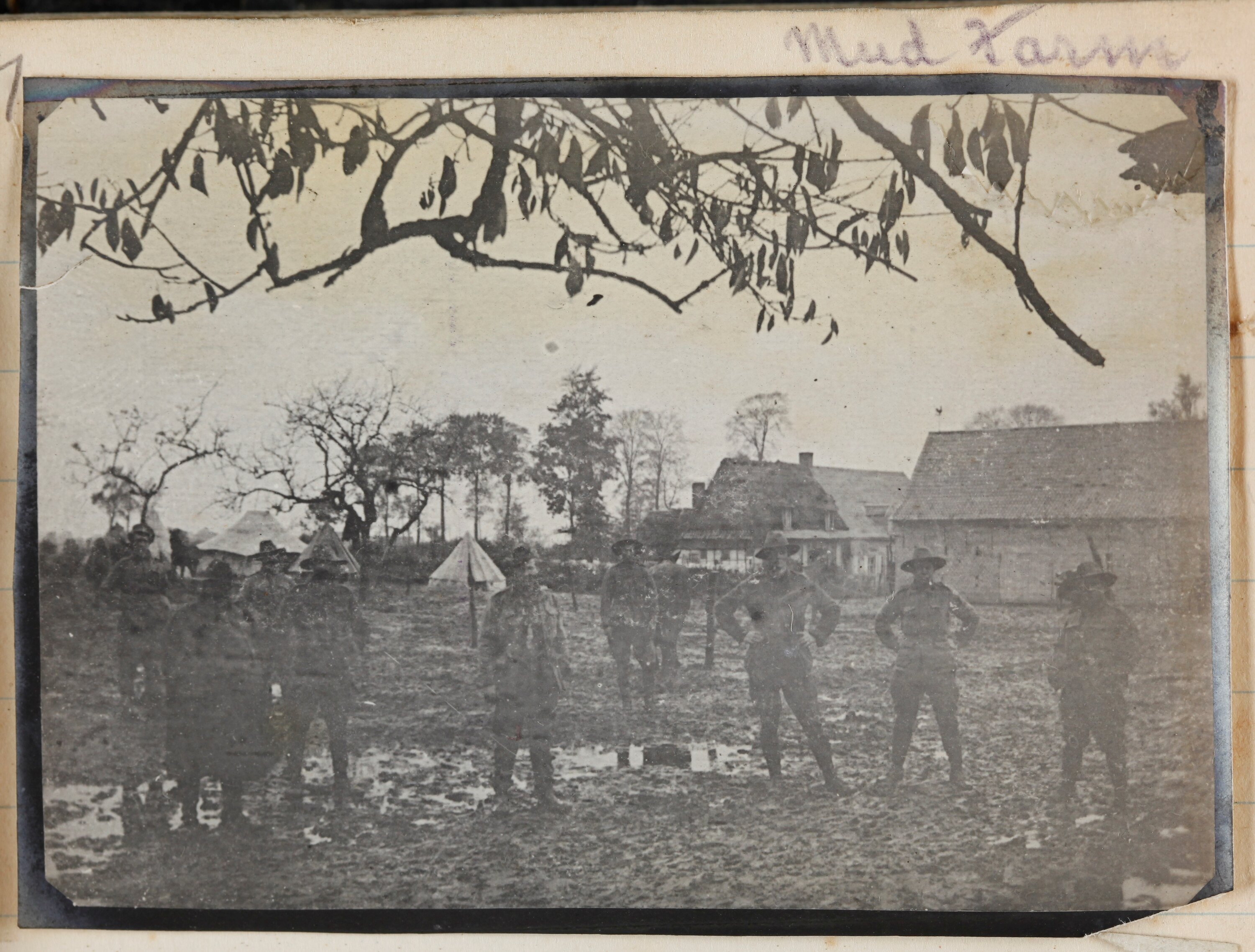Hand written in grey pencil to the left of the photograph on the album page; '607' Hand written in grey pencil above the image on the album page; 'Mud Farm'