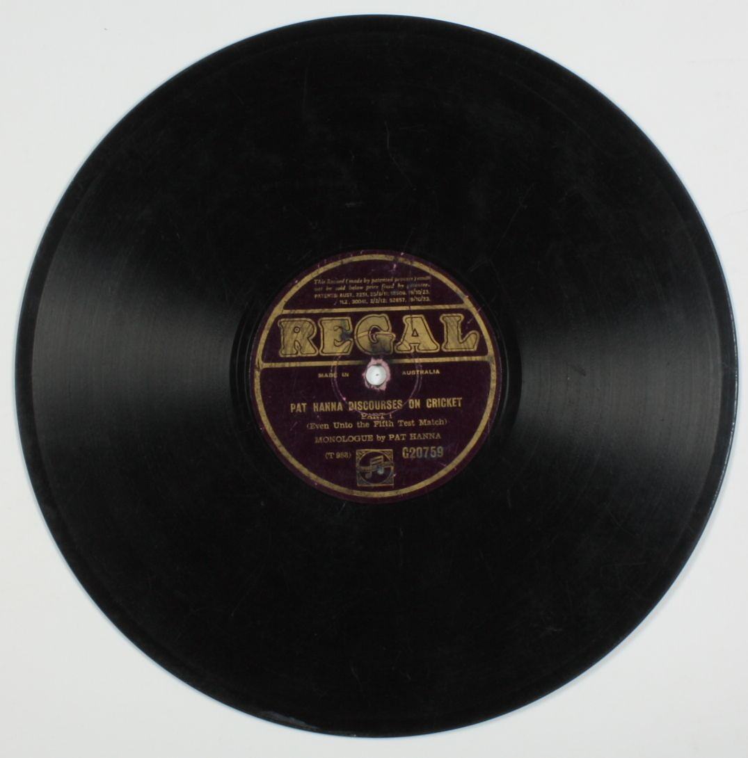 Regal recordings of "Pat Hanna Discourses on Cricket, Parts 1 and 2 Even unto the Fifth Test Match