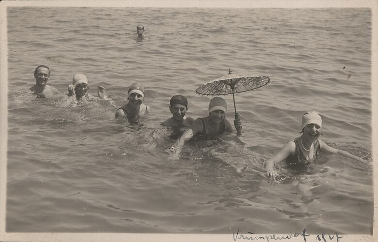 Migrant Businesses, Migrants, Austrian, Austrian Immigration, Swimming, Umbrellas, Beaches, Oceans, Leisure, Leisure Activities, Swimwear